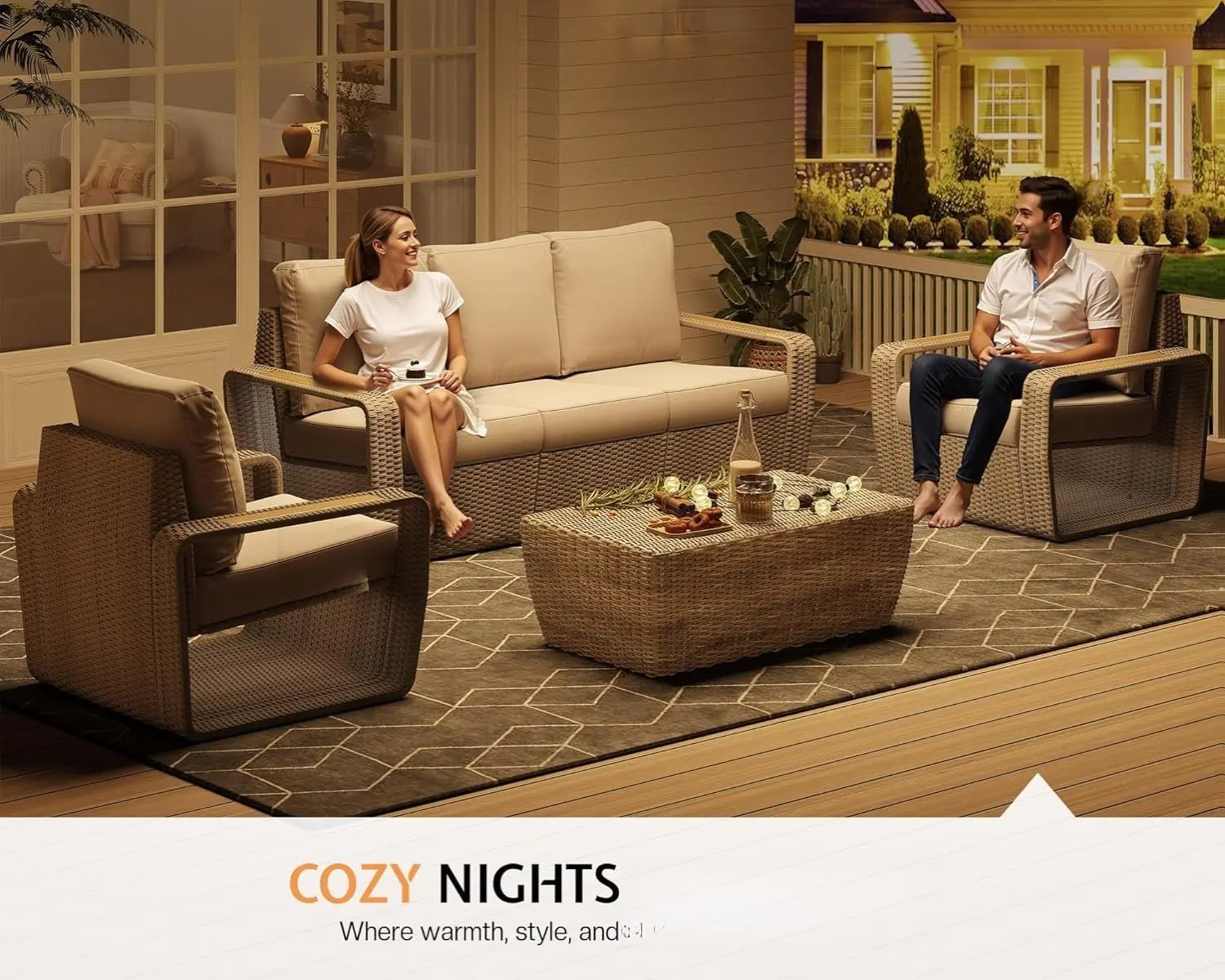 ·【Unique Armrest Design】Featuring irregular-shaped armrests and built-in PVC panels, this patio conversation sets adds a touch of elegance and sophistication to your outdoor space