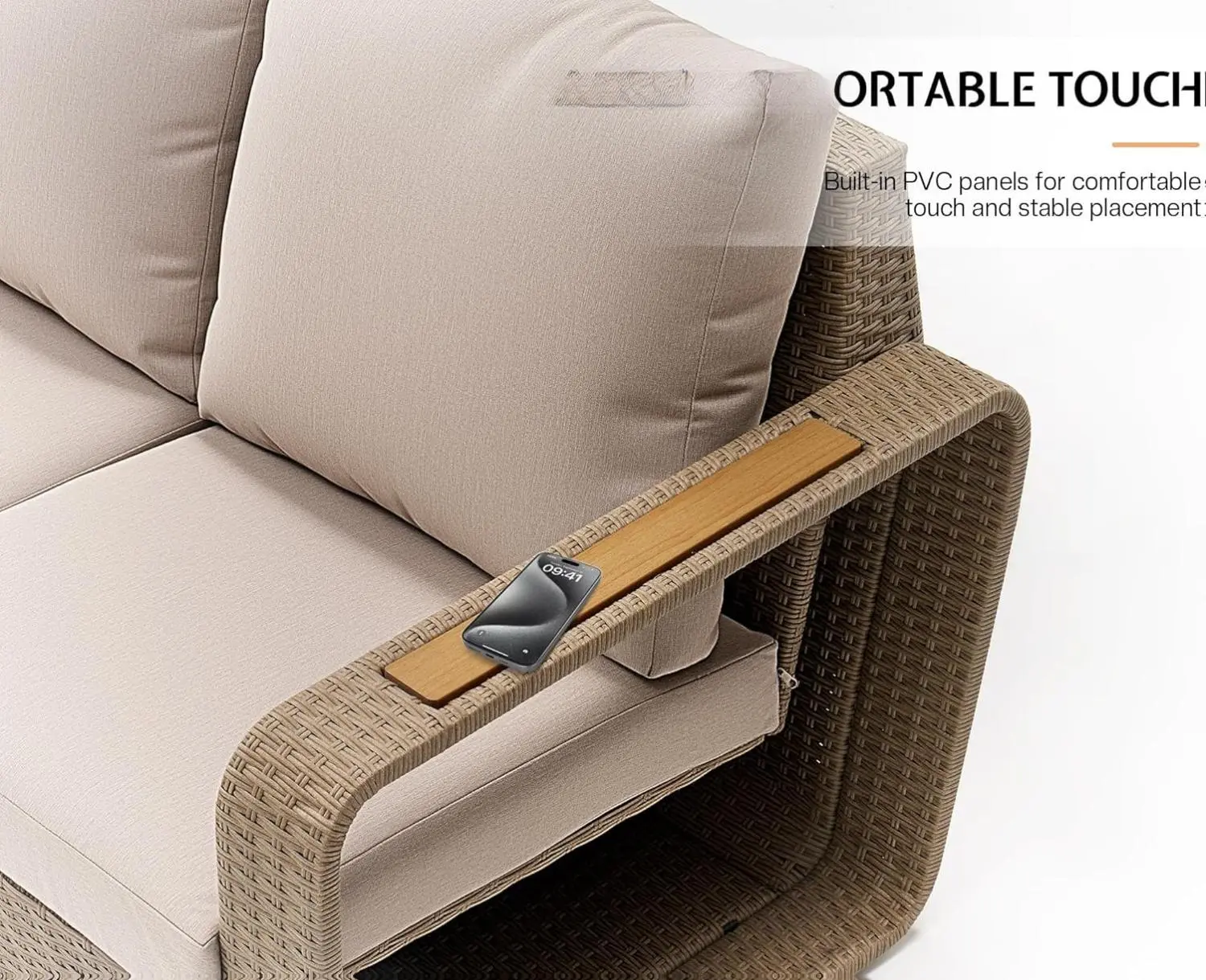 ·【Comfortable Seating】 Full-size outdoor sofa with non-slip fabric cushion, greatly increasing sitting space, thickened 4.72 inches cushion (18% thicker than others') with soft backrest, creates more comfortable seating