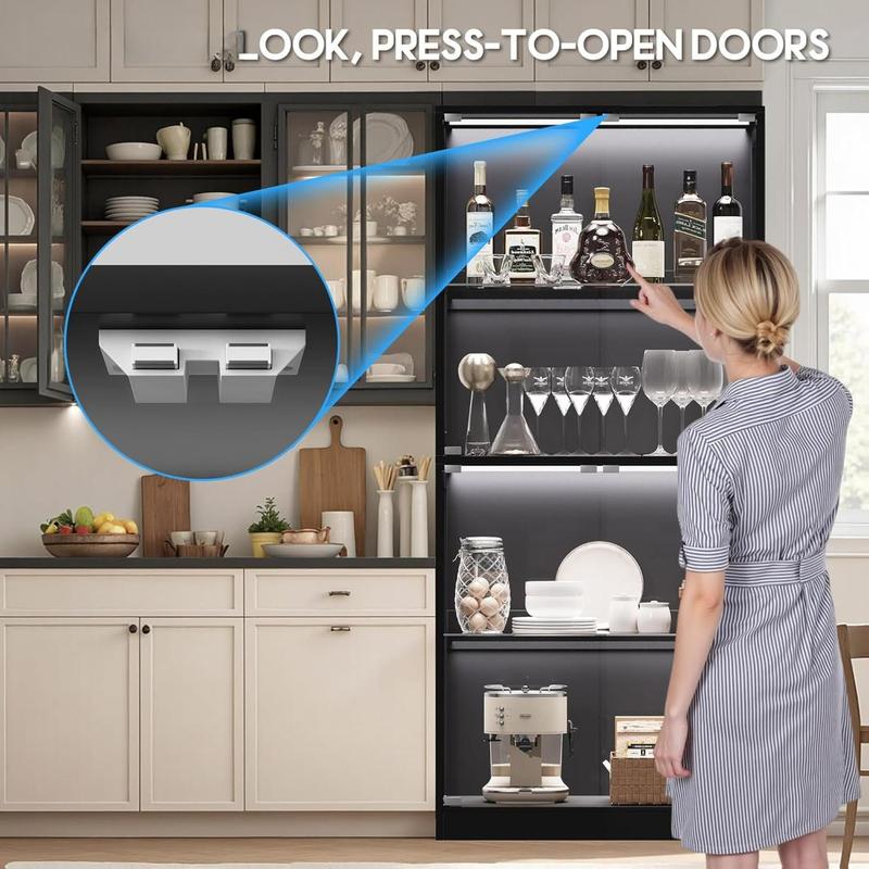 ·【Press-to-Open Glass Doors】Modern glass display cabinet with press-to-open doors offers a clean, handle-free look and easy access, perfect for stylish interior setups
