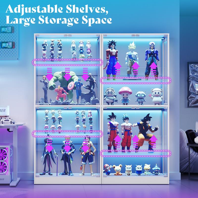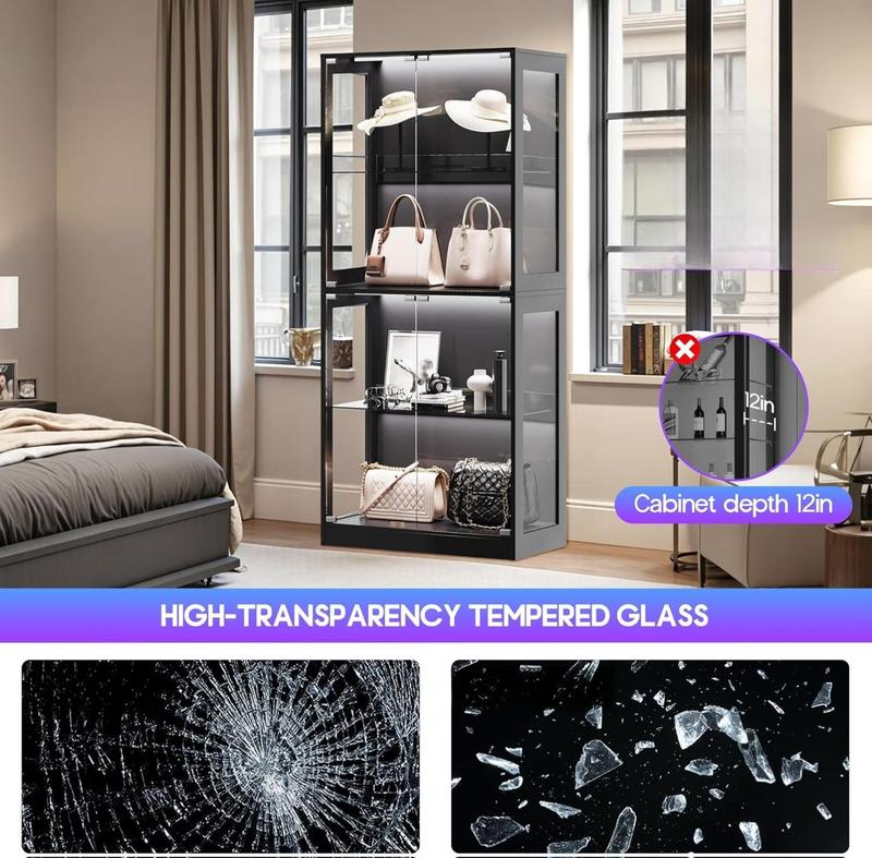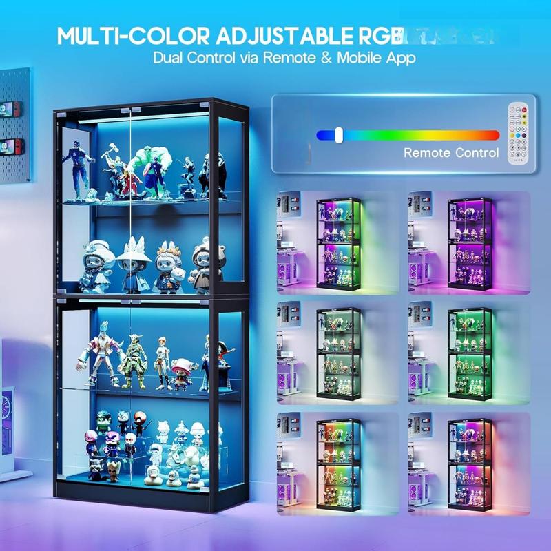 ·【Smart RGB Lighting System】This glass display cabinet features RGB lights with multiple dynamic modes (strobe, fade, smooth, music-reactive), controllable via app or remote, adding vibrant ambiance to your collection