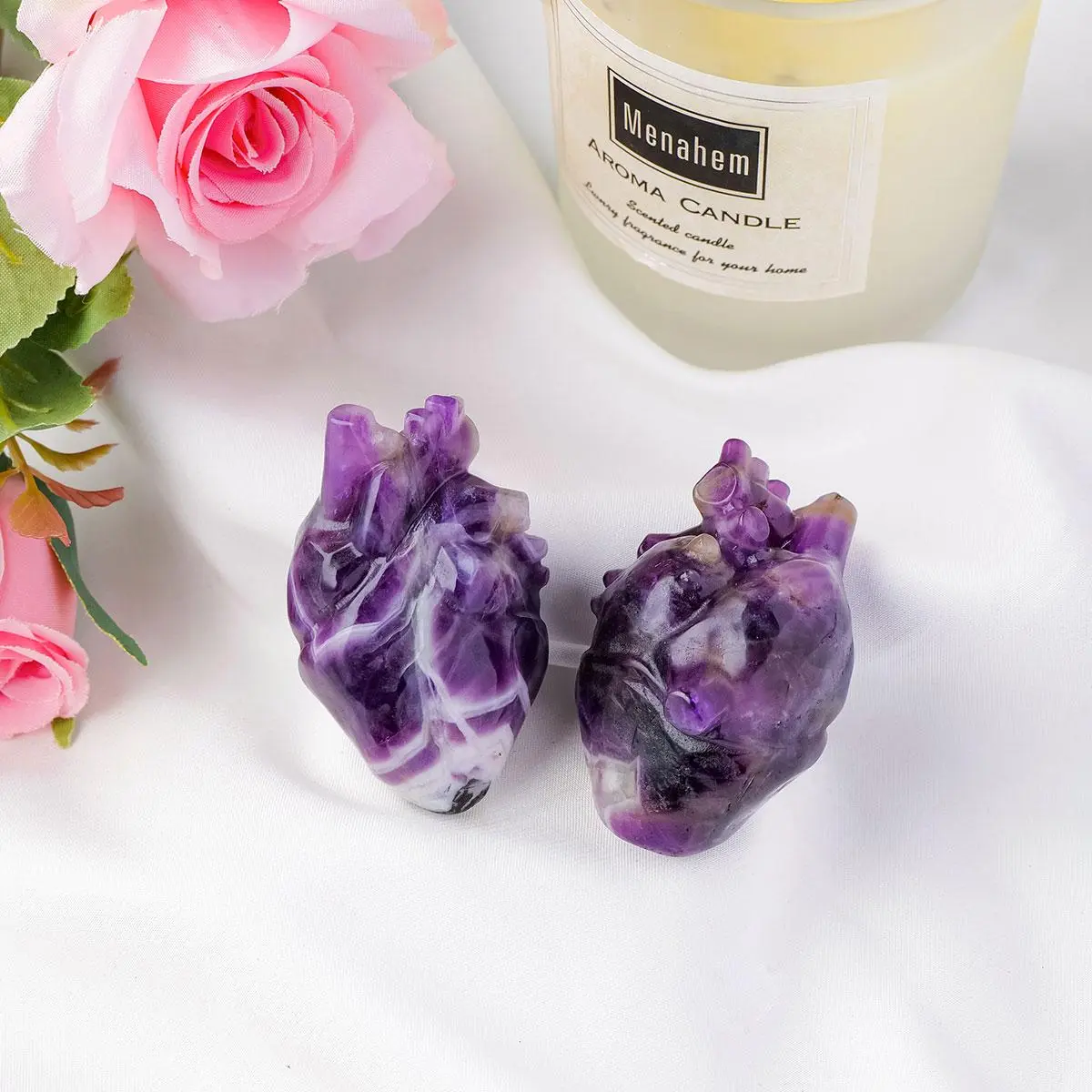 【Natural Amethyst】: Crafted from genuine amethyst, this heart-shaped ornament channels positive energy and supports healing and meditation practices.