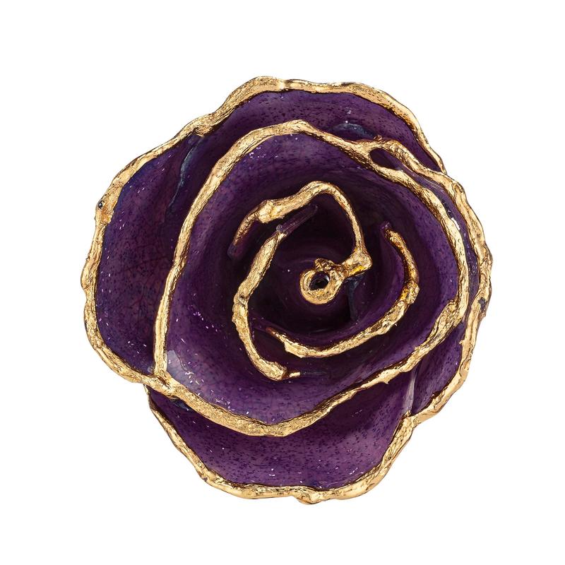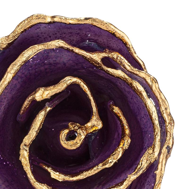 Just like the amethyst gemstone, each of our Amethyst Forever Roses is one of a kind. Made by hand with a real rose, each of these roses has its own unique purple coloration complimented with a tasteful spread of glittery sparkles suspended in the lacquer finish.