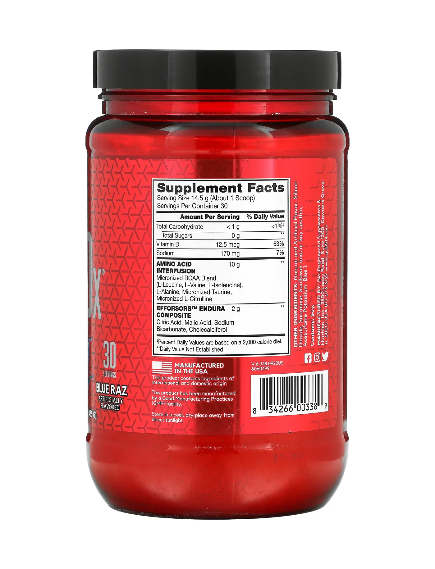 ·10g of micronized BCAAs and the essential amino acids, L-Alanine, Taurine and L-Citrulline per serving