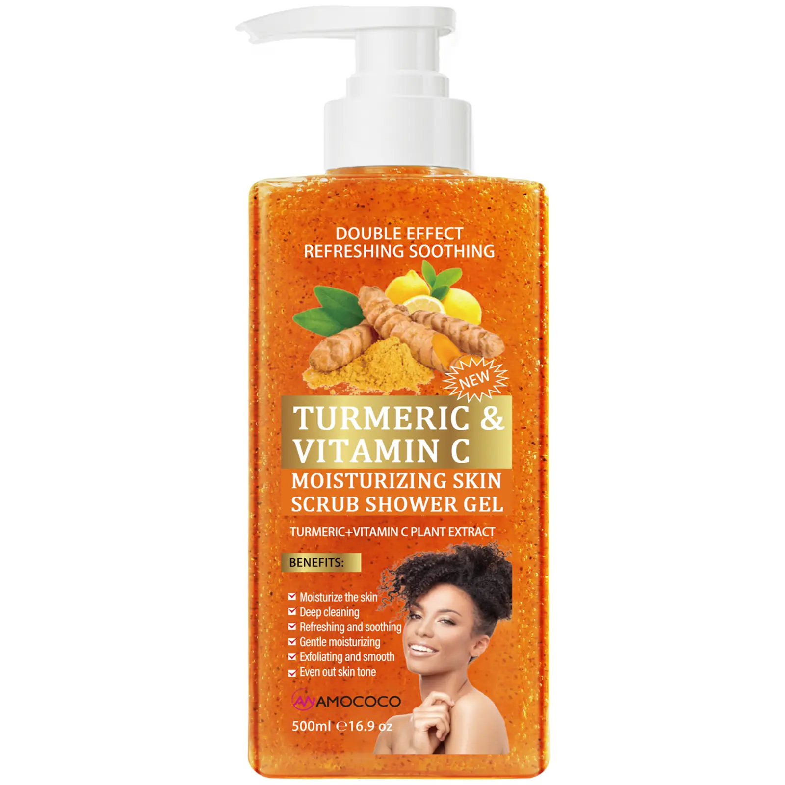 Turmeric-citrus scent stays all day! Refreshing every shower.