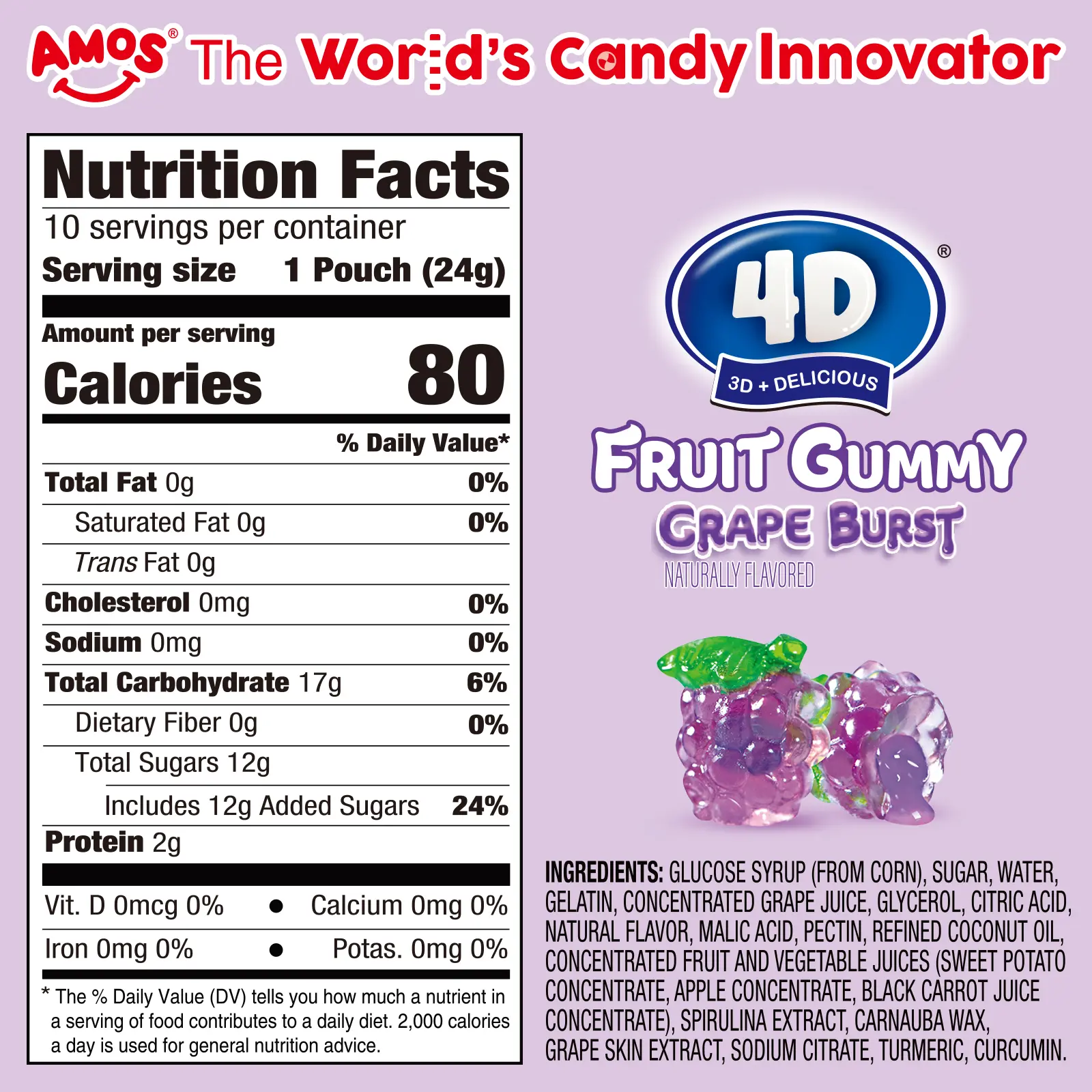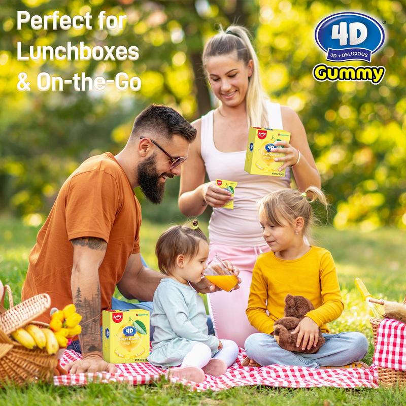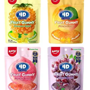 Each piece of AMOS Gummy Candy 4D Fruit Gummies is bursting with 6.75% real peach juice, offering a juicy burst of flavor in every bite. Made with real fruit, these gummies provide an authentic taste experience. Perfect for special dates or kids' birthday parties, these candies are ideal for any occasion.