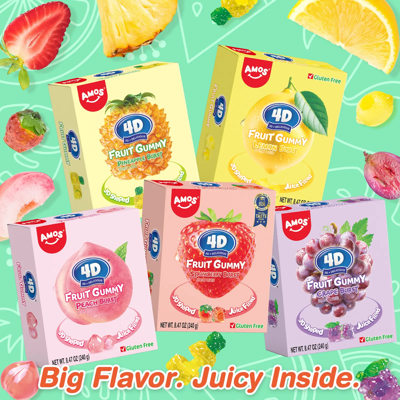 🍋 AMOS 4D Fruit Gummy - New Lemon Explosion 240g Bulk Pack