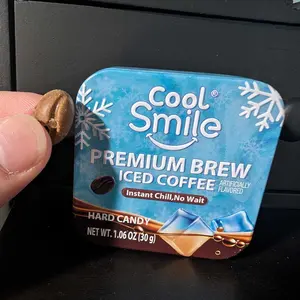 ā Enjoy the refreshing iced coffee flavor of AMOS Cool Smile Coffee Candy. Perfect for a quick energy boost on the go. This candy offers an instant chill, no wait energy boost. Ideal for those needing a quick pick-me-up anytime, anywhere.
