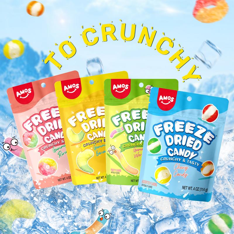 ·TIKTOK TRENDY TREATS - Dive into the latest TikTok craze with Amos freeze-dried crunchy candy. Perfect for ASMR challenges, road trips, study snacks, or any craving. Vegan-friendly and free from trans fat, and gelatin.