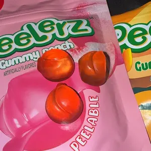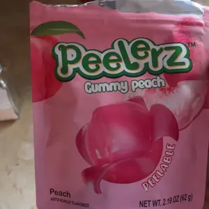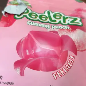 As a gummy candy, these are absolutely terrific! The taste is spot on for the flavor peach. However, it doesn't really 'peel', per se. There's nothing (maybe a bit of clear goo) on the inside of these clear gummies.
