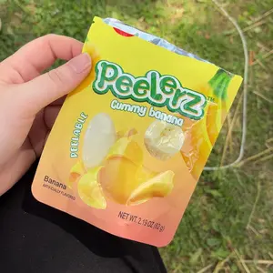 Okay! Yes! Banana are the ones that have the tougher ‘skin’ that “peels”, compared to others (grape, orange, and peach), which are really just gummies. Super banana flavor, does peel, and has substance and not goo inside! This is what I was looking for when I bought these candies!