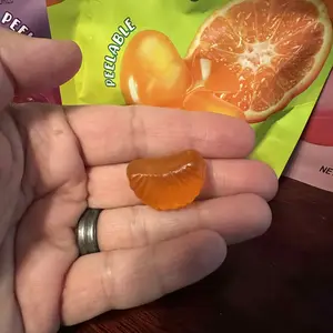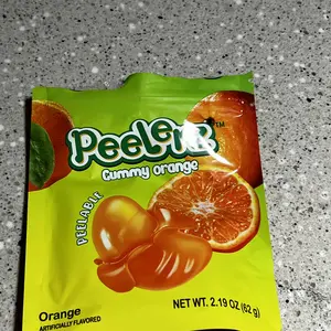 As a gummy candy, these are absolutely terrific! The taste is spot on for the flavor orange. However, it doesn't really 'peel', per se. There's nothing (maybe a bit of clear goo) on the inside of these clear gummies.