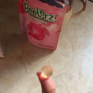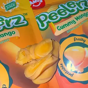 As a gummy candy, these are absolutely terrific! The taste is spot on for the flavor grape. However, it doesn’t really ‘peel’, per se. There’s nothing (maybe a bit of clear goo) on the inside of these clear gummies. A little disappointed, but in the end, at least they’re very good flavored gummies.