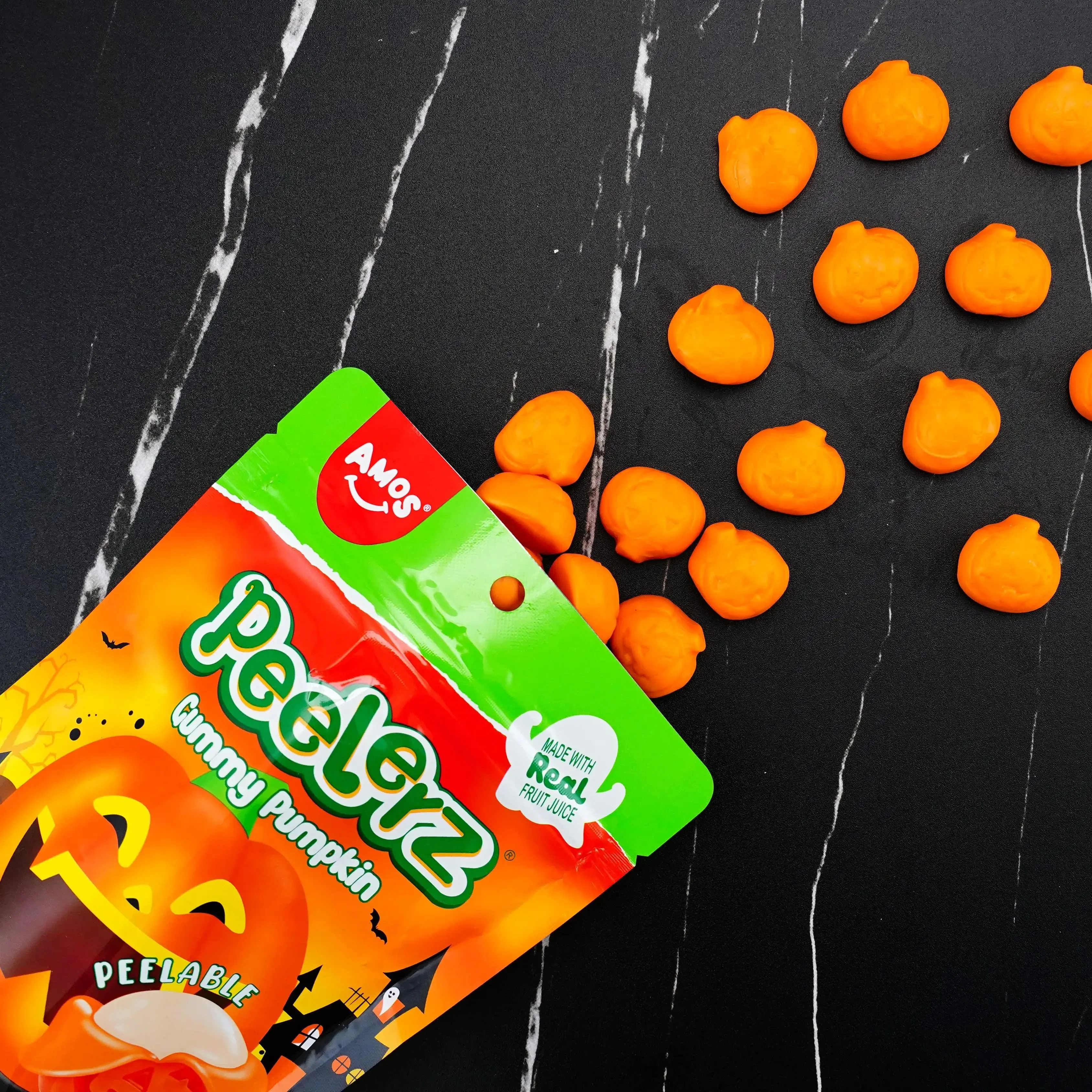 #HalloweenCandy #GummyCandy #PumpkinSpice #AmosSweets #LimitedEdition #TrickOrTreat #SpookySweets #OrangeFlavor