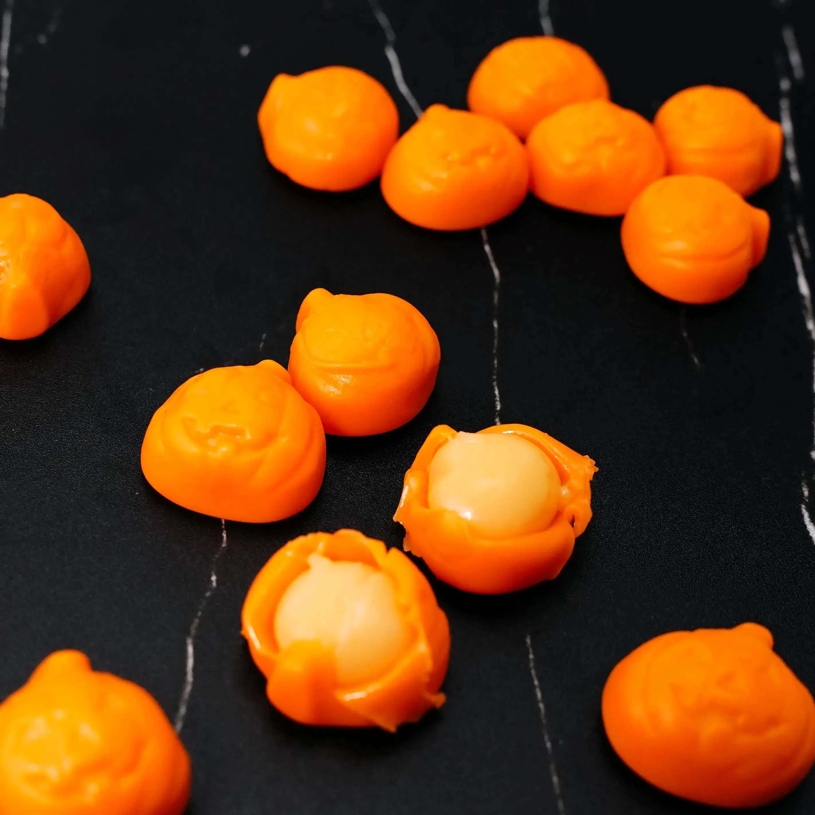 ·Tiny, adorable pumpkin-shaped gummy candies with realistic peelable 'skin', full of fun
