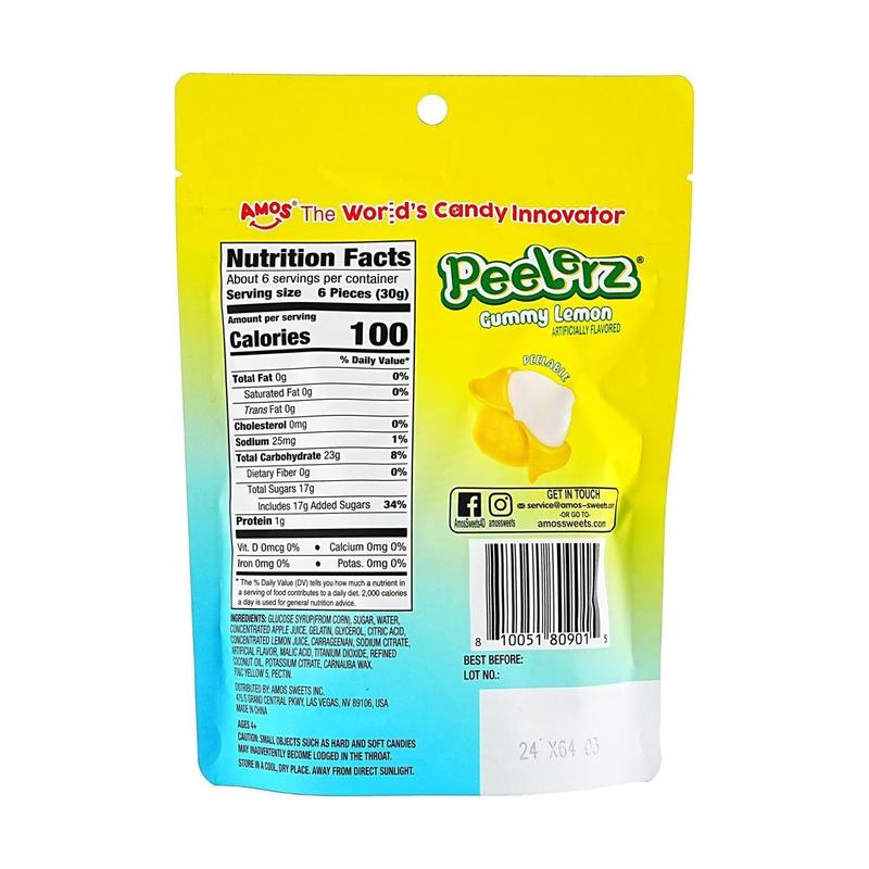 🍋 Get ready for a burst of sunshine with Amos Sweets Lemon Peel Gummies! Made with real fruit juice for an authentic, zesty flavor that will tantalize your taste buds. 😋