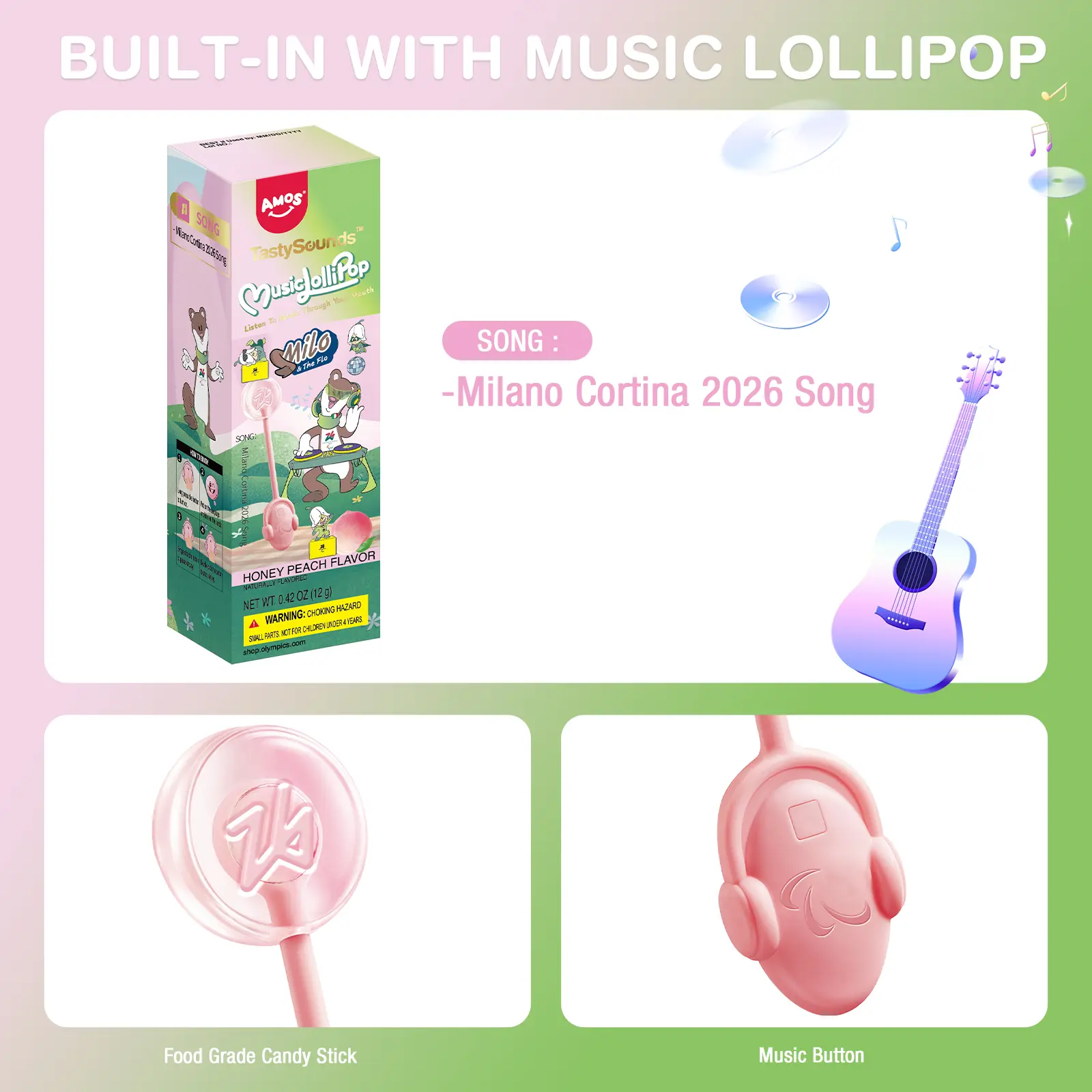 ·Amos TastySounds Music Lollipops: Enjoy the unique experience of sugar-free heart-shaped candies with bone conduction music tech. 🎶