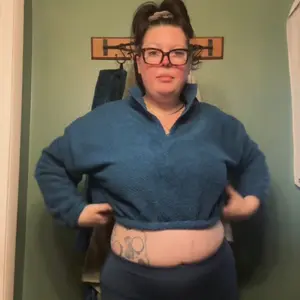 It runs small. It’s more of a crop top than a mid drift. The bra is thin, the leggings are small in the waistband but the hoodie is really nice! it fits so well and the color is just as described. Its really soft and the fuz doesn’t catch on your jewelry!