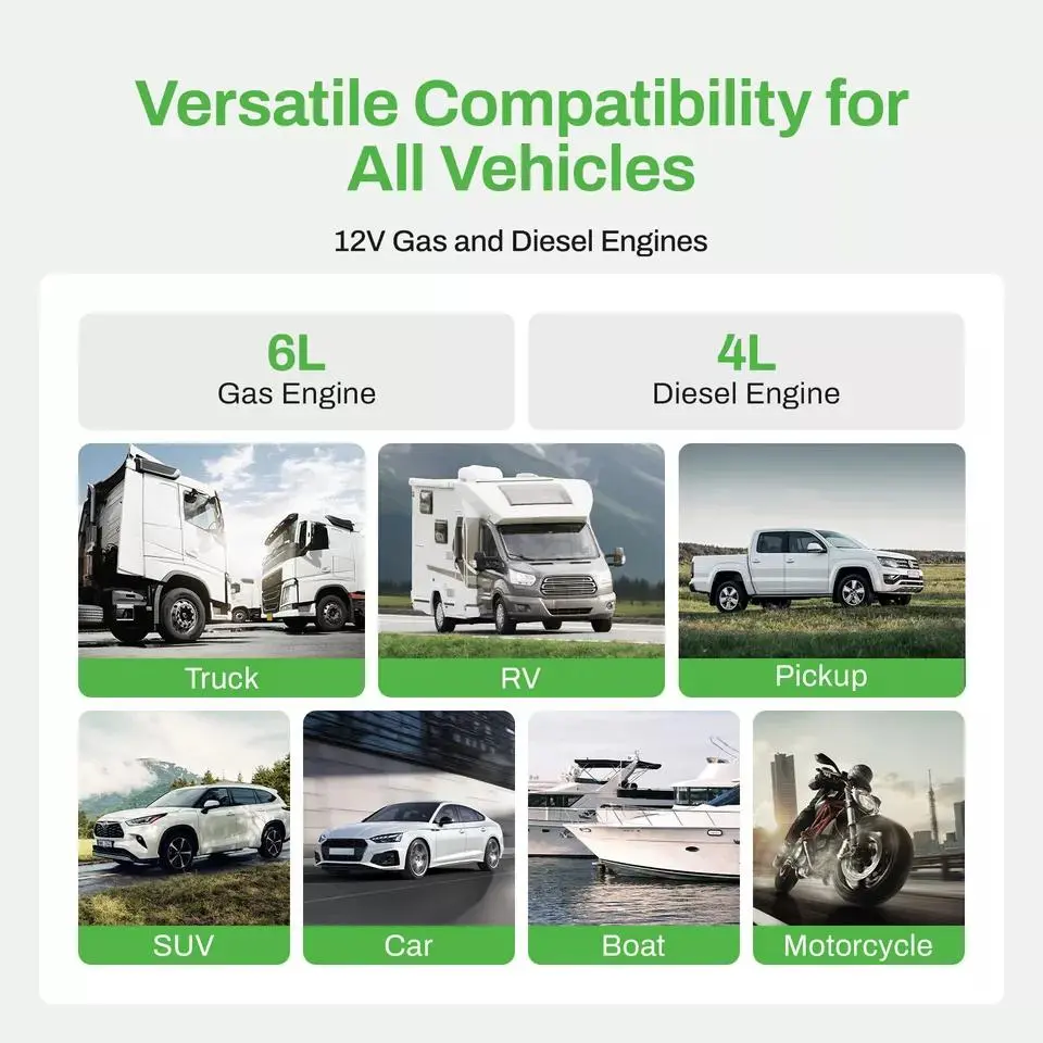 ·Ideal for cars, trucks, motorcycles, and more, making it a reliable car battery charger jump starter.