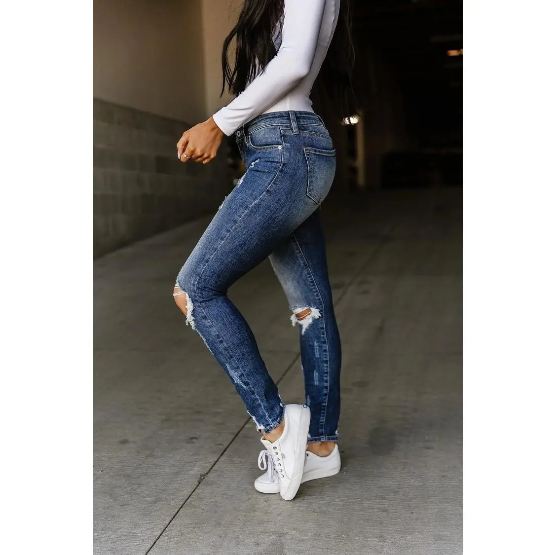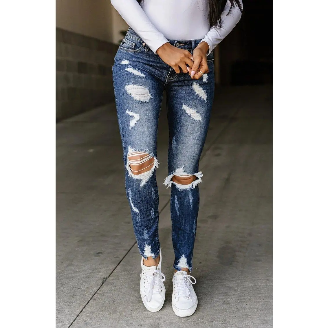 Fit: Very stretch in the legs. Didnt hold shape. Size Suitability: True to size Fabric & Comfort: Comfortable Quality: Good Love the style, color, and rips however, the jeans didnt hold shape and ended up baggy in the legs after a few hours. Didnt like and returned.