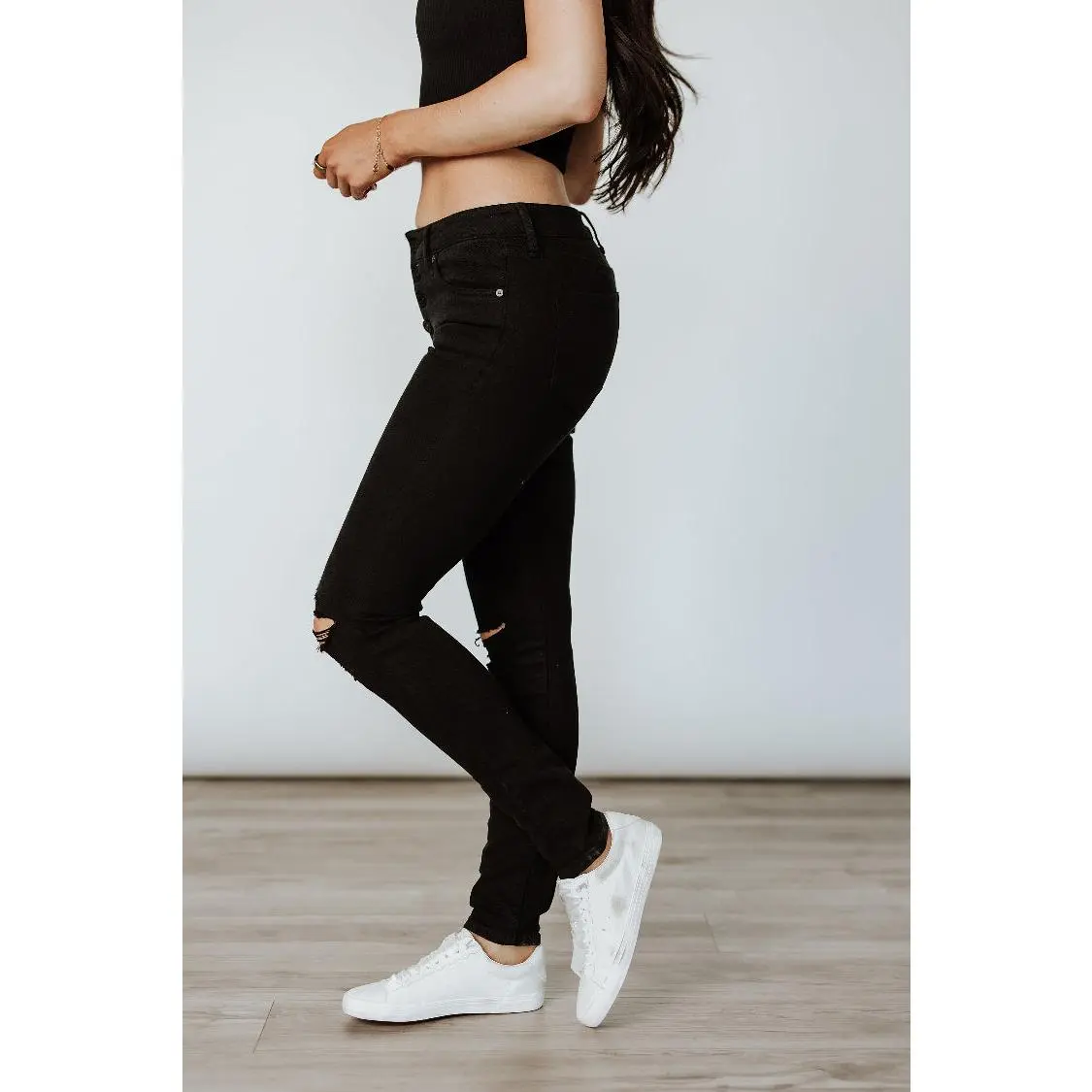 These black jeans are a perfect transition into fall. Love how comfortable they are with a little stretch