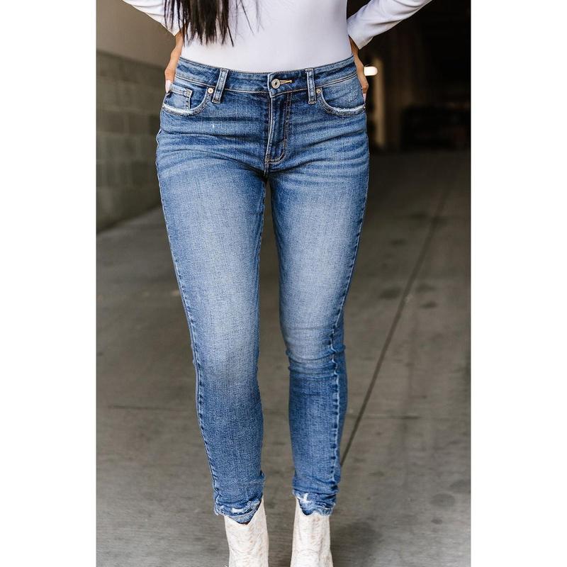 These jeans are soooooo good! Super cute and fit really well. Love the distressing at the bottom. Adds character to the jeans without having big holes everywhere.