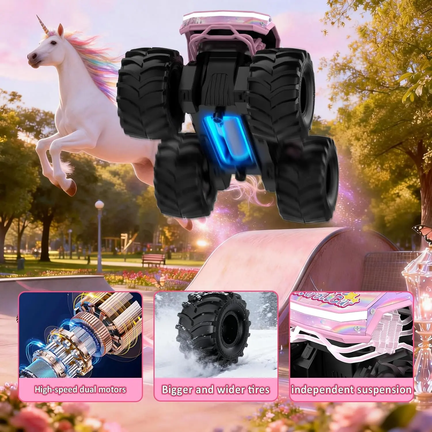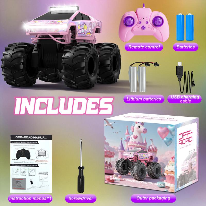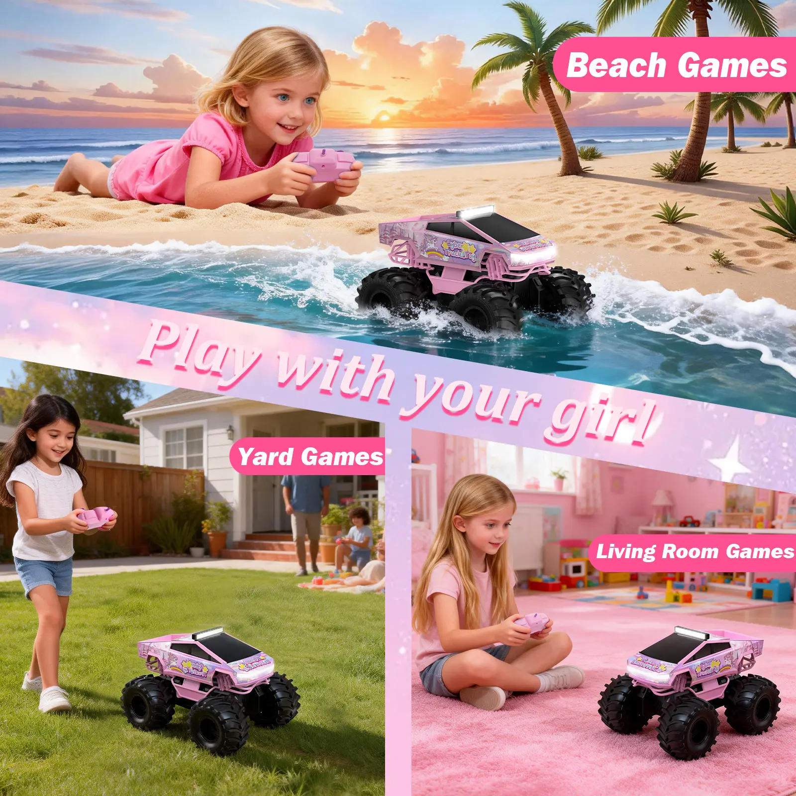 Not just pink, but pure power! An all-terrain amphibious remote-control monster truck designed just for girls.