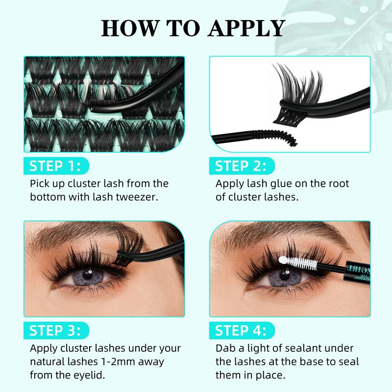 Love this lash cluster kit! The lashes are sooo cute! I typically use 10,12,14,16,16 for the CUTEST cat eye look! Definitely a must buy! I love that it comes with the different shaped tweezers which make it easier to apply the lashes in my opinion. The lash bond and seal work really well!