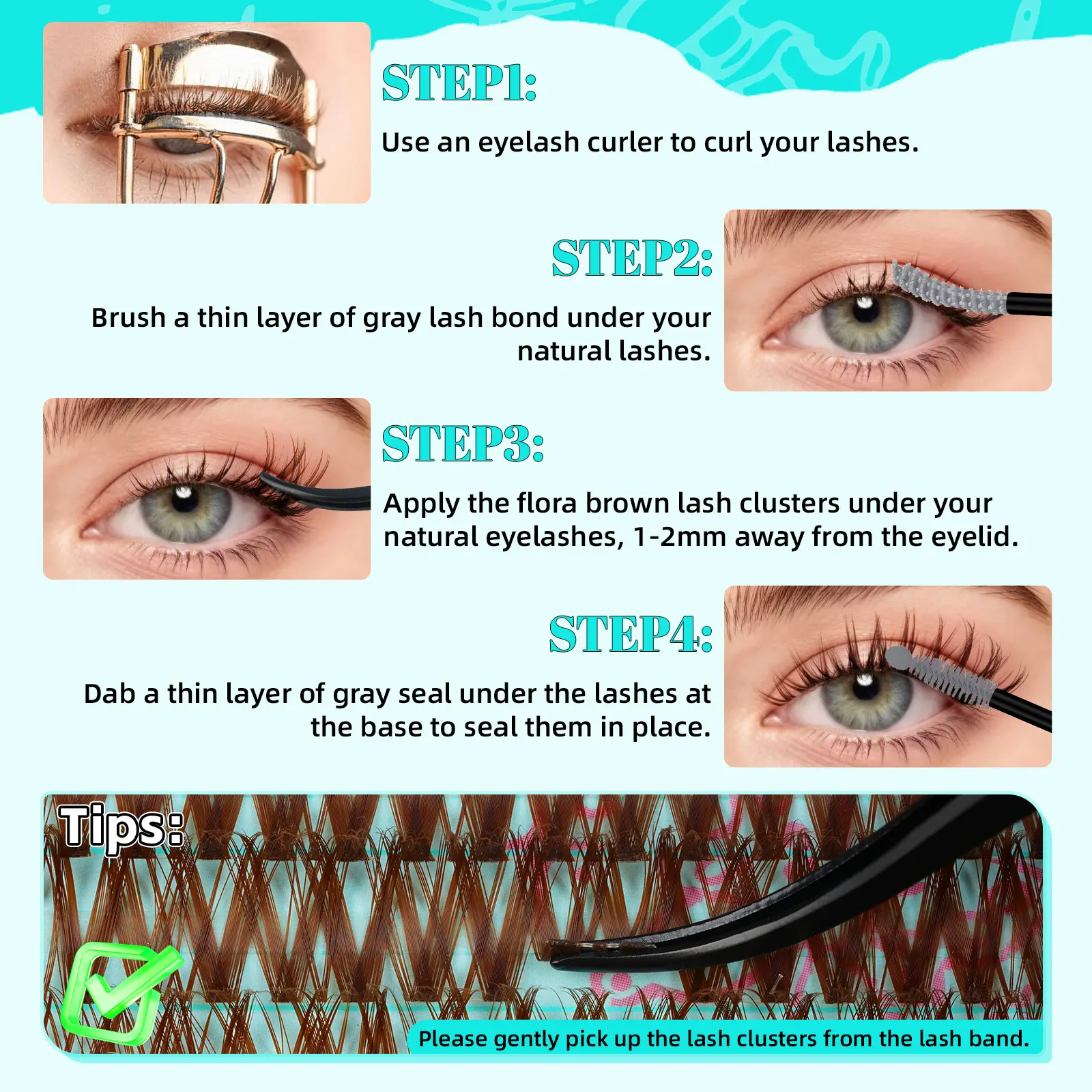 【Flora Brown Eyelash Clusters Kit: Salon-Worthy Wispy Lashes】