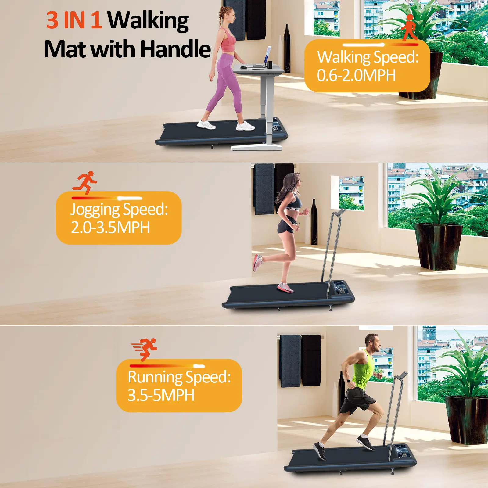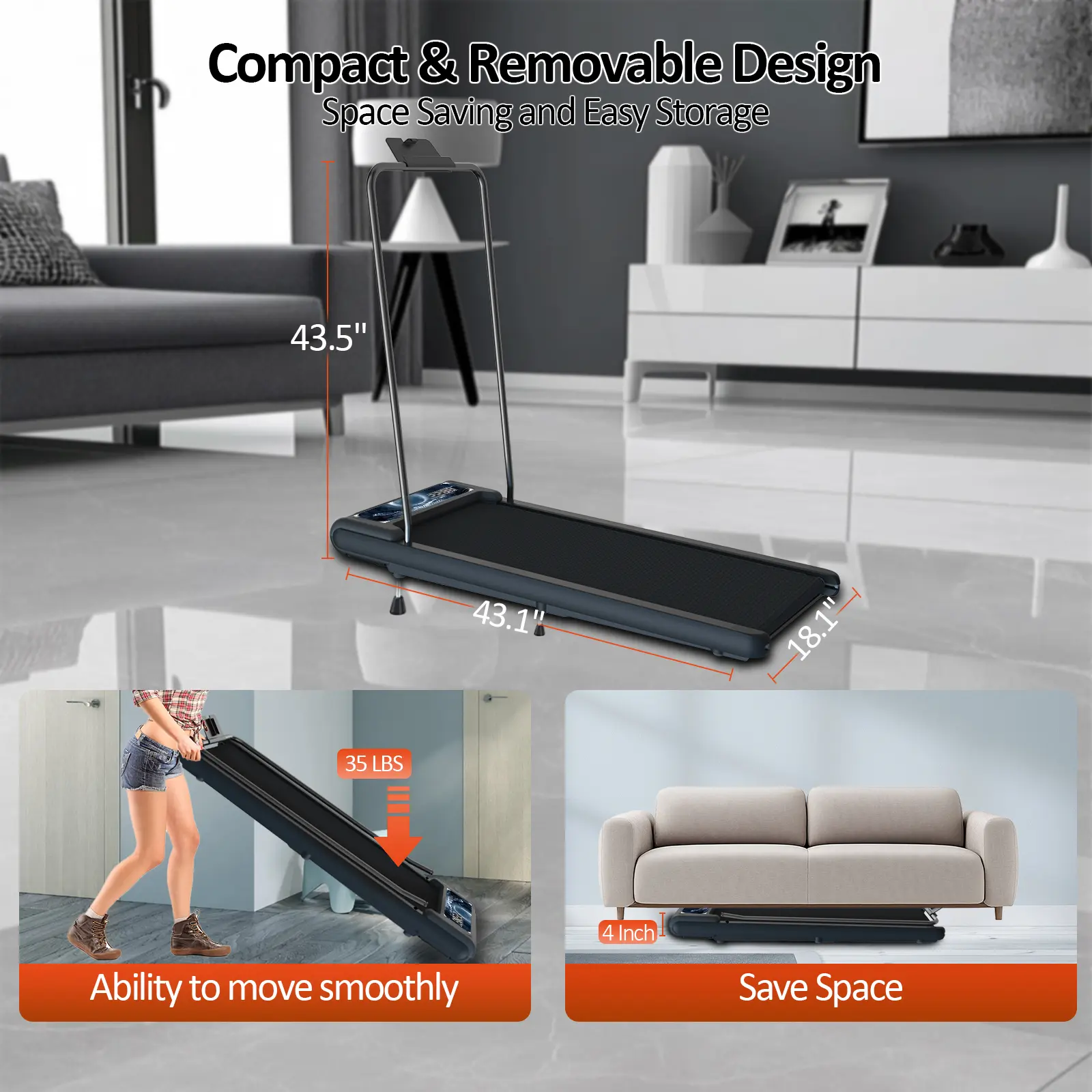Featuring a foldable design that slim down to just 4.2 inches, this treadmill weighs only 35 lbs. It easily converts into a slim walking pad and stores under beds or in closets. Use the included remote control and LED dashboard to monitor your activity data and adjust settings with ease. A great space-saving fitness solution.