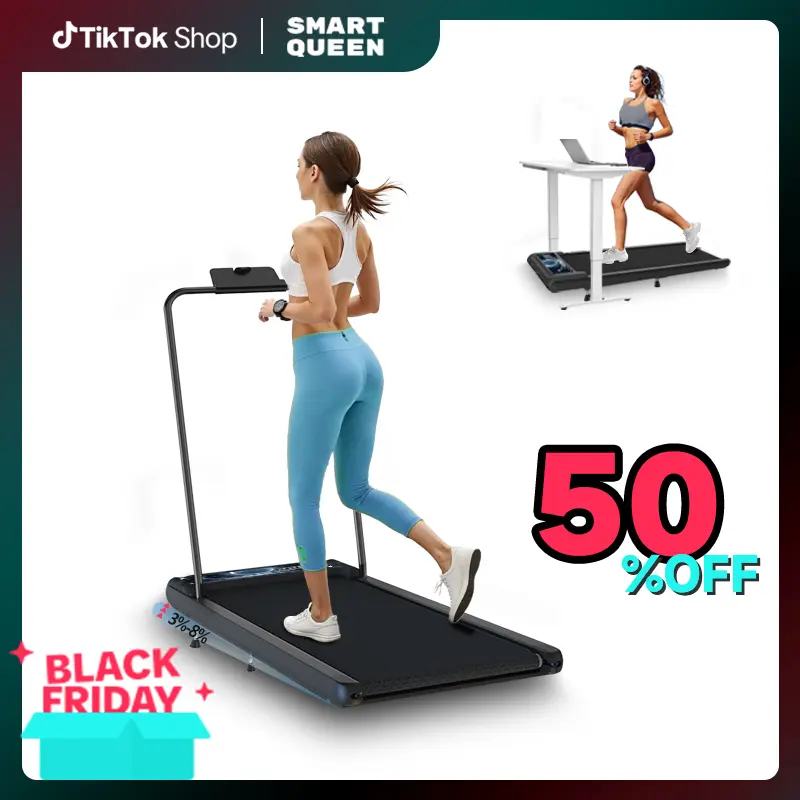 This SMART QUEEN Under Desk Treadmill is equipped with a 2.5HP quiet motor and an 8% auto incline. It offers smooth speed adjustment from 1–5 MPH and supports users up to 270 lbs with its reinforced steel frame. Ideal for home or office environments, it fits neatly under standing desks and operates quietly. Designed for users looking for a stable and low-noise movement experience.