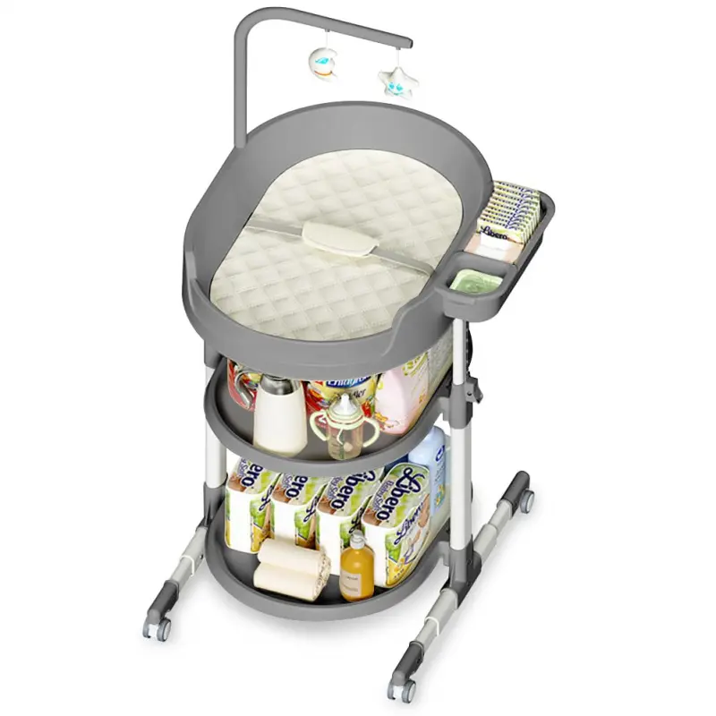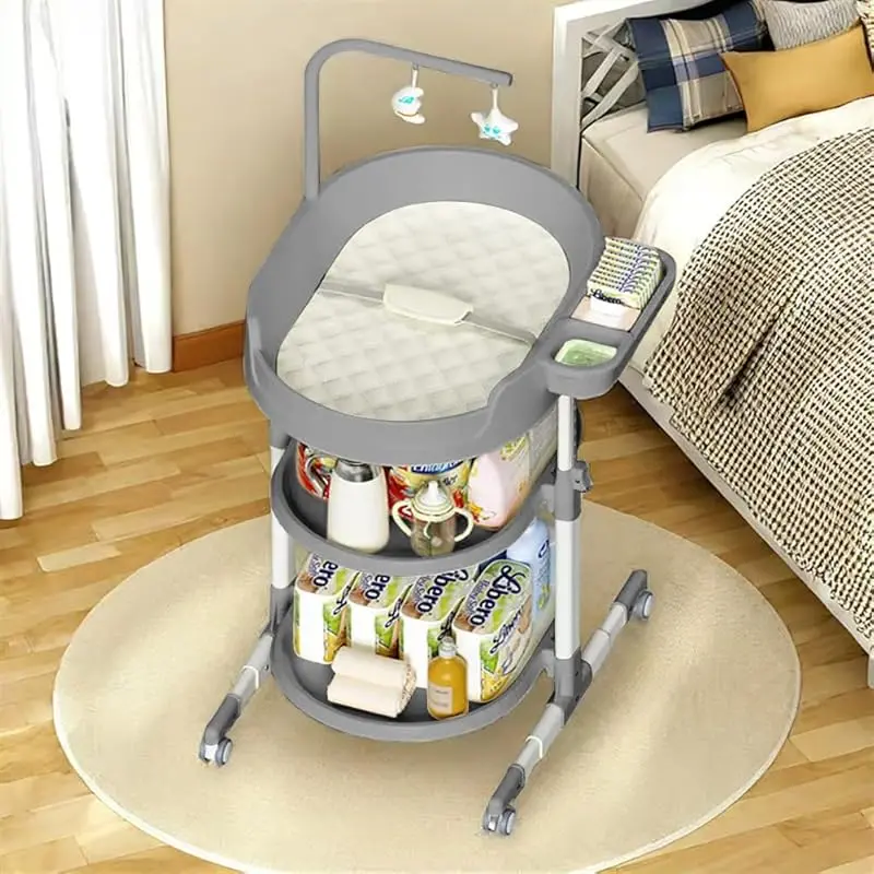 😄[UPGRADED 8 HEIGHT CHANGING STATION] We are well aware that taking care of babies is such a huge and complex task, and our portable diaper changing station provides 8 perfect positions for parents of different heights.It will provide great help for changing diapers or caring for babies, and you will never bend or kneel.From now on, say goodbye to soreness and bending over!🧺[UNBELIEVABLE STORAGE SPACE] The diaper changing station is designed to provide ultimate convenience and organization.It is equipped with 2 large storage shelves suitable for placing baby shoes and towels.2 right hand multifunctional care box for storing baby wipes and clean water, allowing you to wipe baby with one hand at ease, and never in a mad rush.✅[QUADRUPLE SAFETY AND SECURITY DESIGN] The safety of babies is our first concern at all times.our baby furniture for nursery is ASTM certified, tested to the Children’s Product Certificate (CPC), and meets applicable CPSC/ASTM standards, The double pyramid construction design with metal tubing is stable and will never tip over and can bear up to 120 pounds.The perimeter fence and adjutable comfortable safety belt ensure that baby won't slip off.📏[WHEELS AND PORTABLE DESIGN] Equipped with 4 smooth wheels which allow the changing station for nursery to easily and quietly move from room to room and no need for bulky handling, the 4 wheels have a locking function, when you need it to stay still, you just need to press the locking mechanism lightly.💫[EASY TO CLEAN AND DETACHABLE] Quick cleaning and storage is essential for caring baby, The baby changing table top is made of waterproof PVC material, which is easy to wipe clean.the top part can be detachable and transform into a baby lounger in secondsby pressing the two side button, making it more practical.