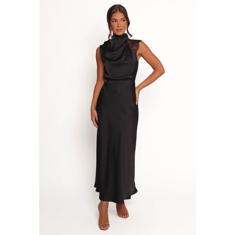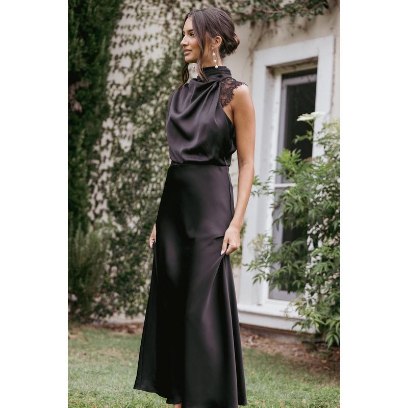 Anabelle Halter Neck Lace Maxi Dress - Black. #TikTokShopJumpstartSale #TikTokShopCreatorPicks #tiktokshoploveatfirstfind #satindress #blackdress
