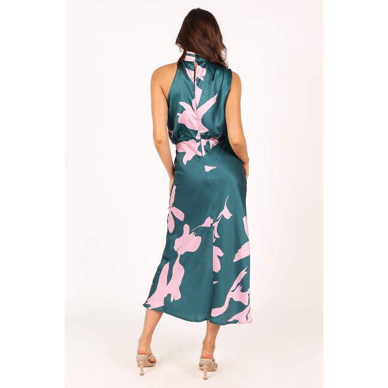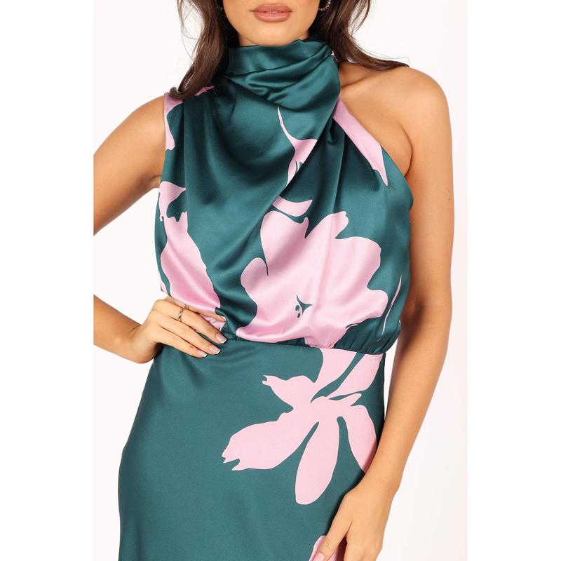 Look and feel your best in this stunning event wear dress! Featuring a midi length, an asymmetric high round neckline with gathered pleat detail, plus a back neck opening with button close, it's the perfect party dress for any special occasion. Not only does it look fabulous, but it feels as good as it looks too — crafted from a soft satin feel just for extra comfort.