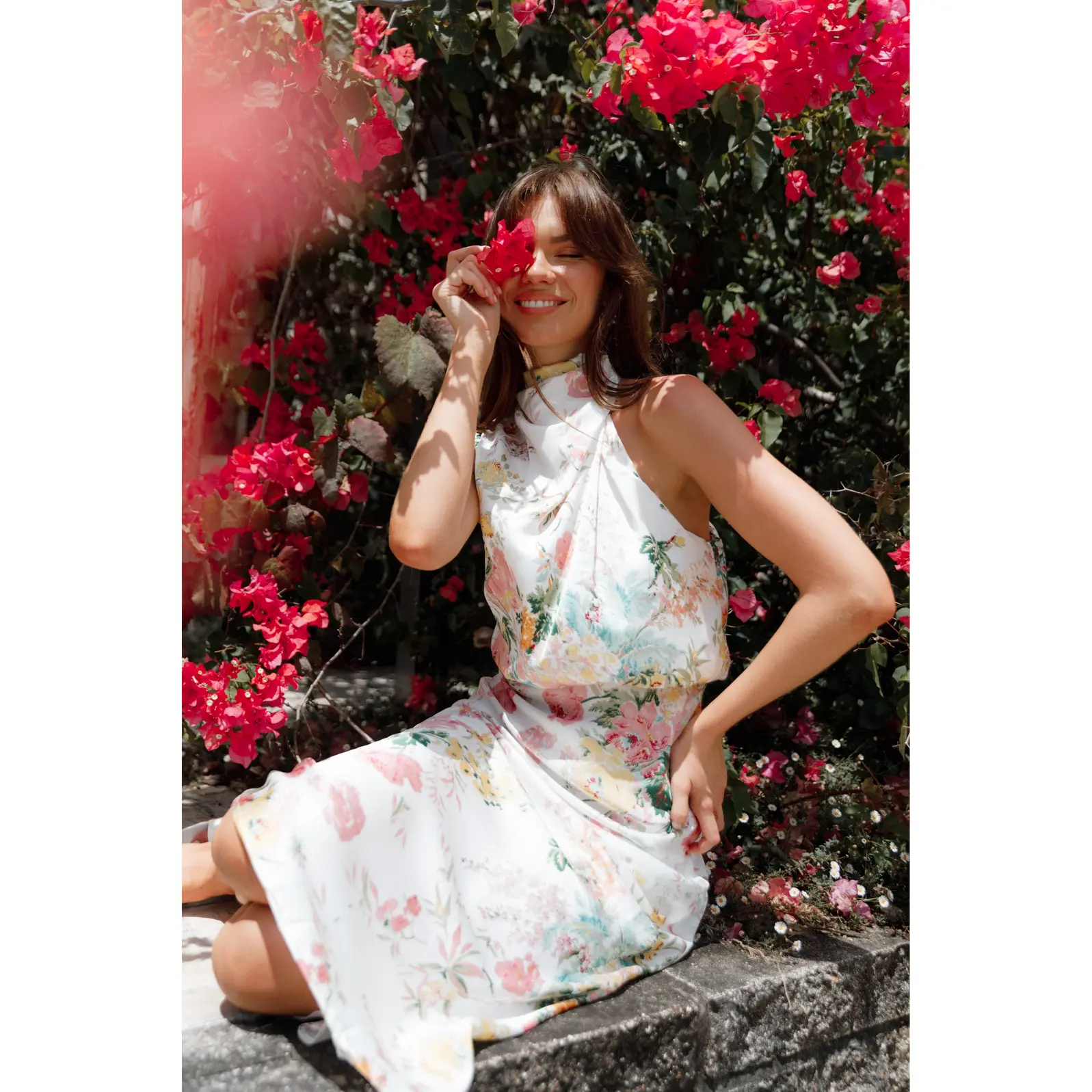 5. Anabelle Halter Neck Midi Dress - White Floral