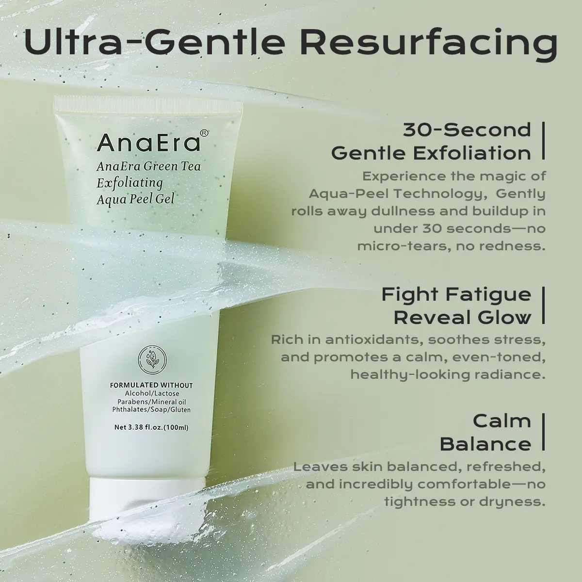 AnaEra Exfoliating Aqua Peel Gel 100ml, Deep Cleansing, Hydrating, Skin Repair Purifying, Green Tea Gentle Exfoliation, Nourishing & Moisturizing, Suitable for All Skin Typese, For Face & Body