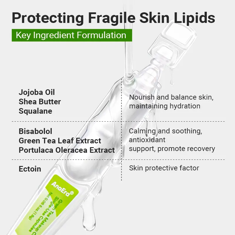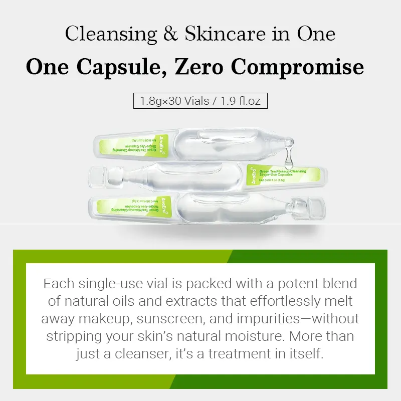 AnaEra Green Tea Makeup Cleansing Oil | Light Facial Cleansing Oil, Deep Clean Pores, Makeup Blackhead Remover, Gentle Cleansing, Dewy Finish, Soft Glowy Skin, Great for All Skin Types (30× 1.8g)