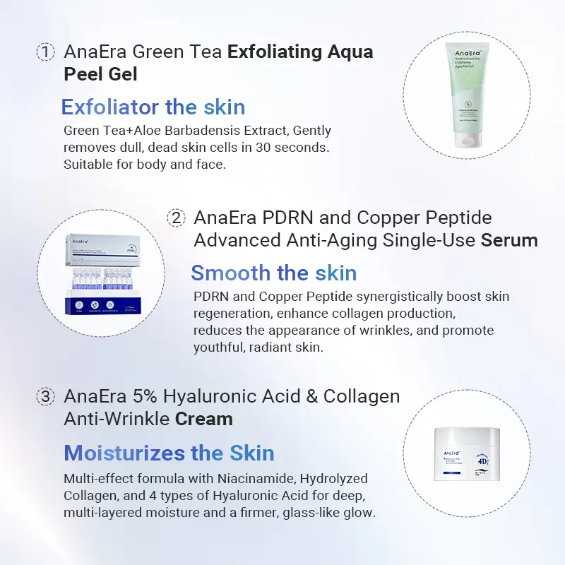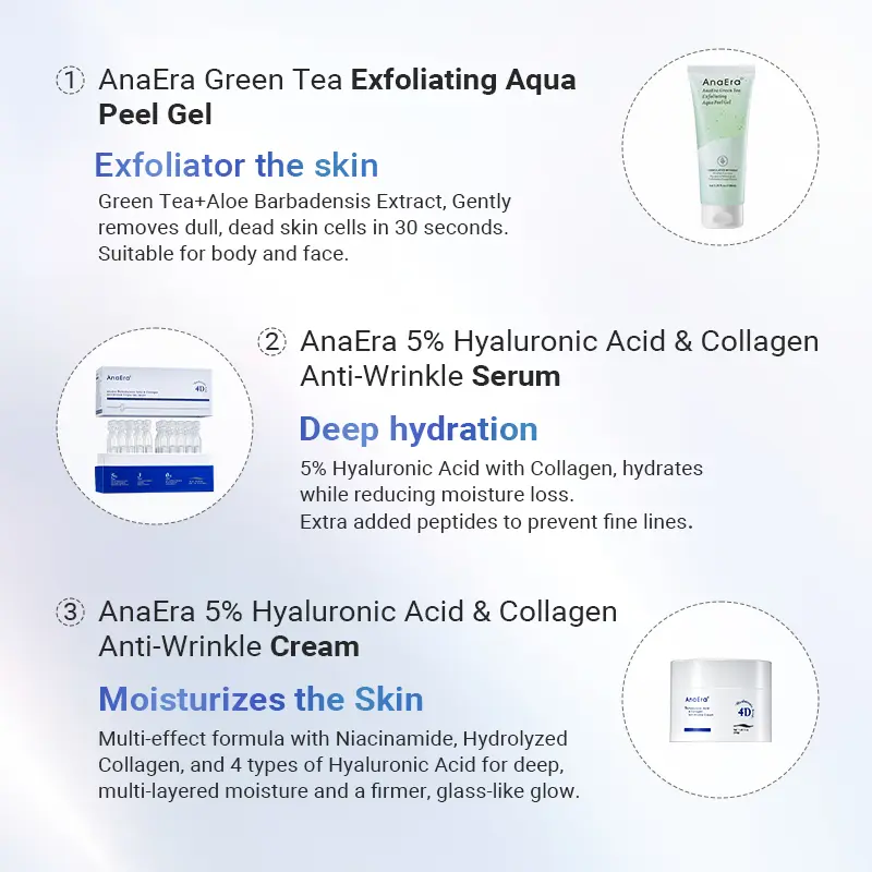·ANAERA 5% HA & Collagen Cream: Rich moisturizer seals in active ingredients, providing lasting hydration and lifting benefits.