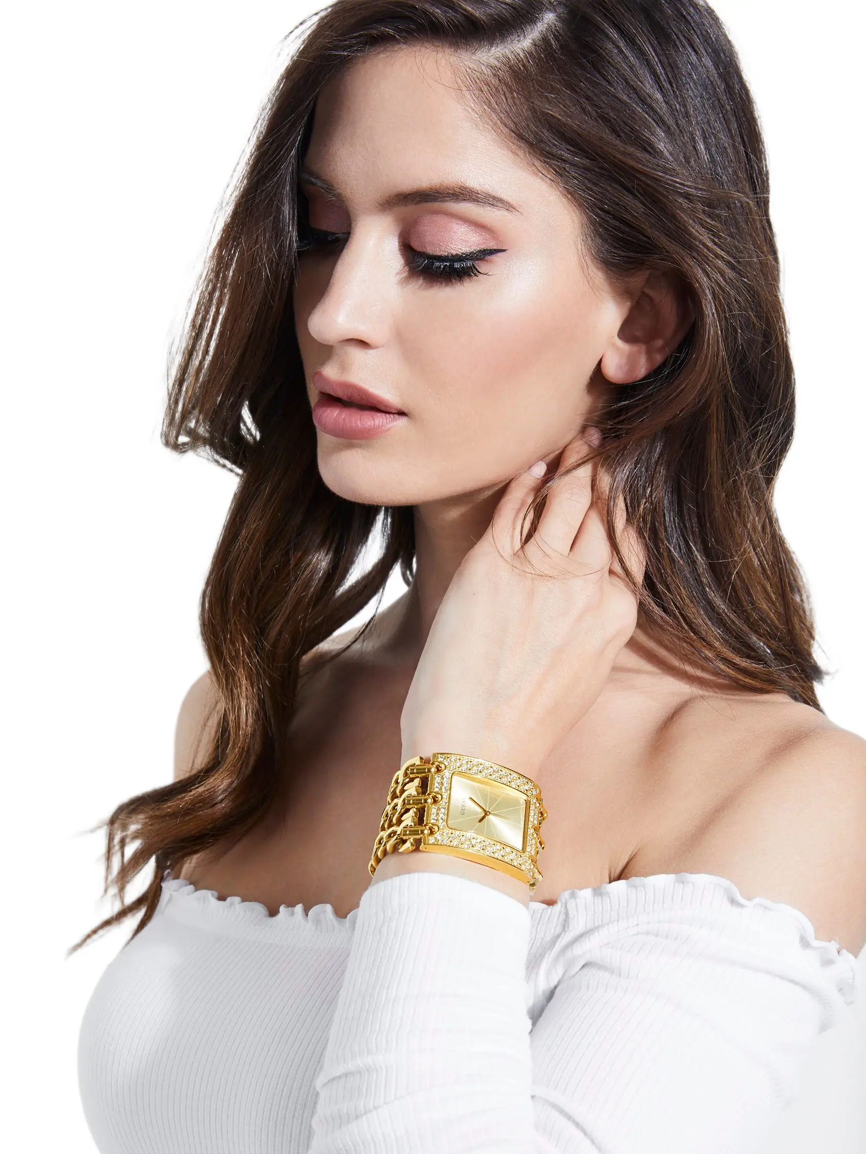 5. GUESS Female Gold-Tone Chainlink Analog Watch