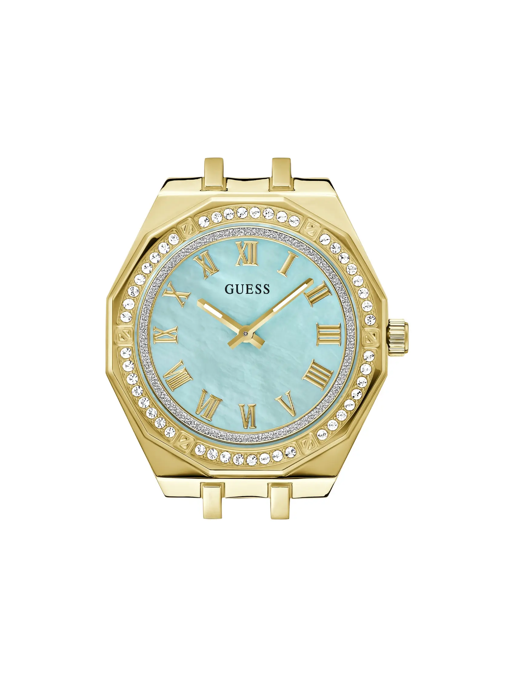 · Gold-tone polished dodecagonal bezel encrusted with crystals