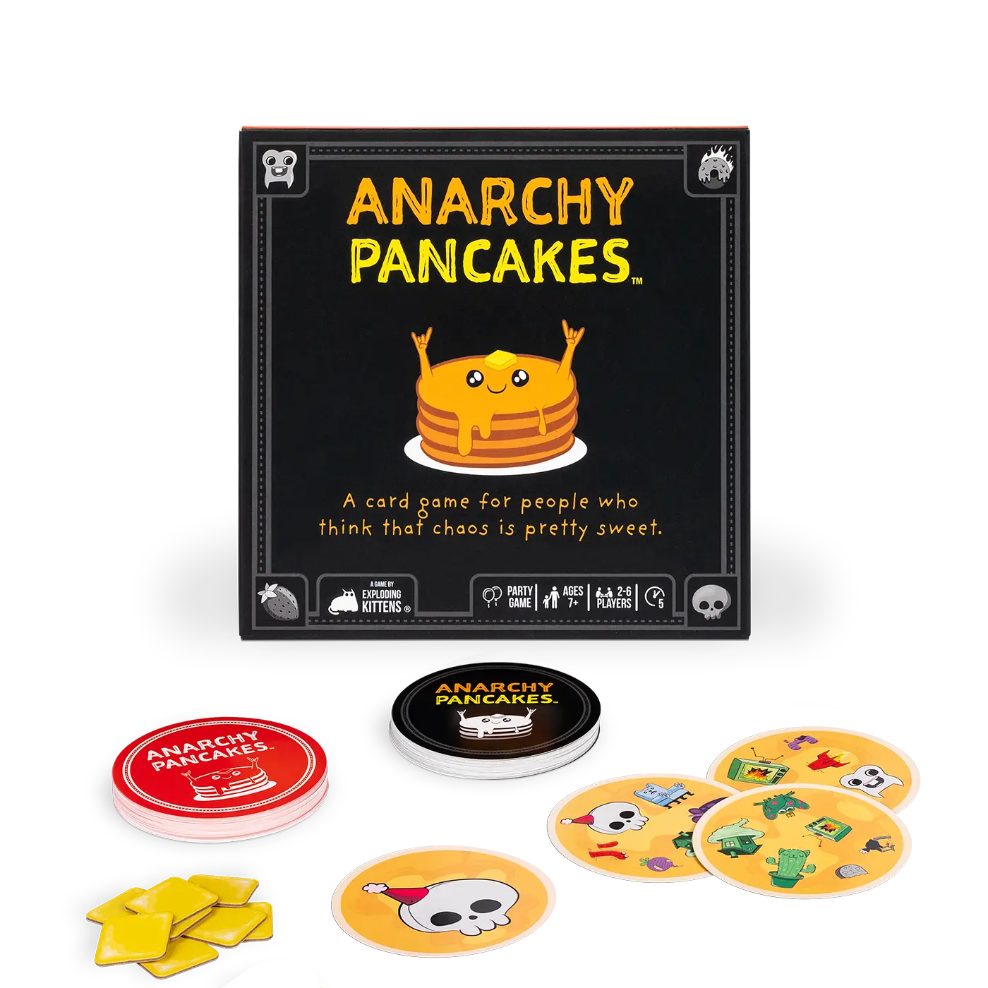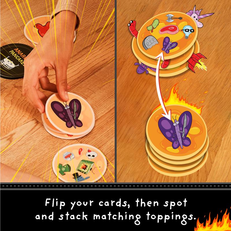 Anarchy Pancakes is a quick, fun-filled card game that guarantees a pancake-flipping frenzy for players of any age (7+). Its fast-paced gameplay and broad appeal make it an excellent choice for any occasion. Whether you're looking for a game to play with family, friends, or a mix of both, Anarchy Pancakes will provide you with a delightful challenge with each round taking less than 5 minutes to complete. Get ready to embrace the chaos, sharpen your reflexes, and enjoy the sweet flipping pancake glory!