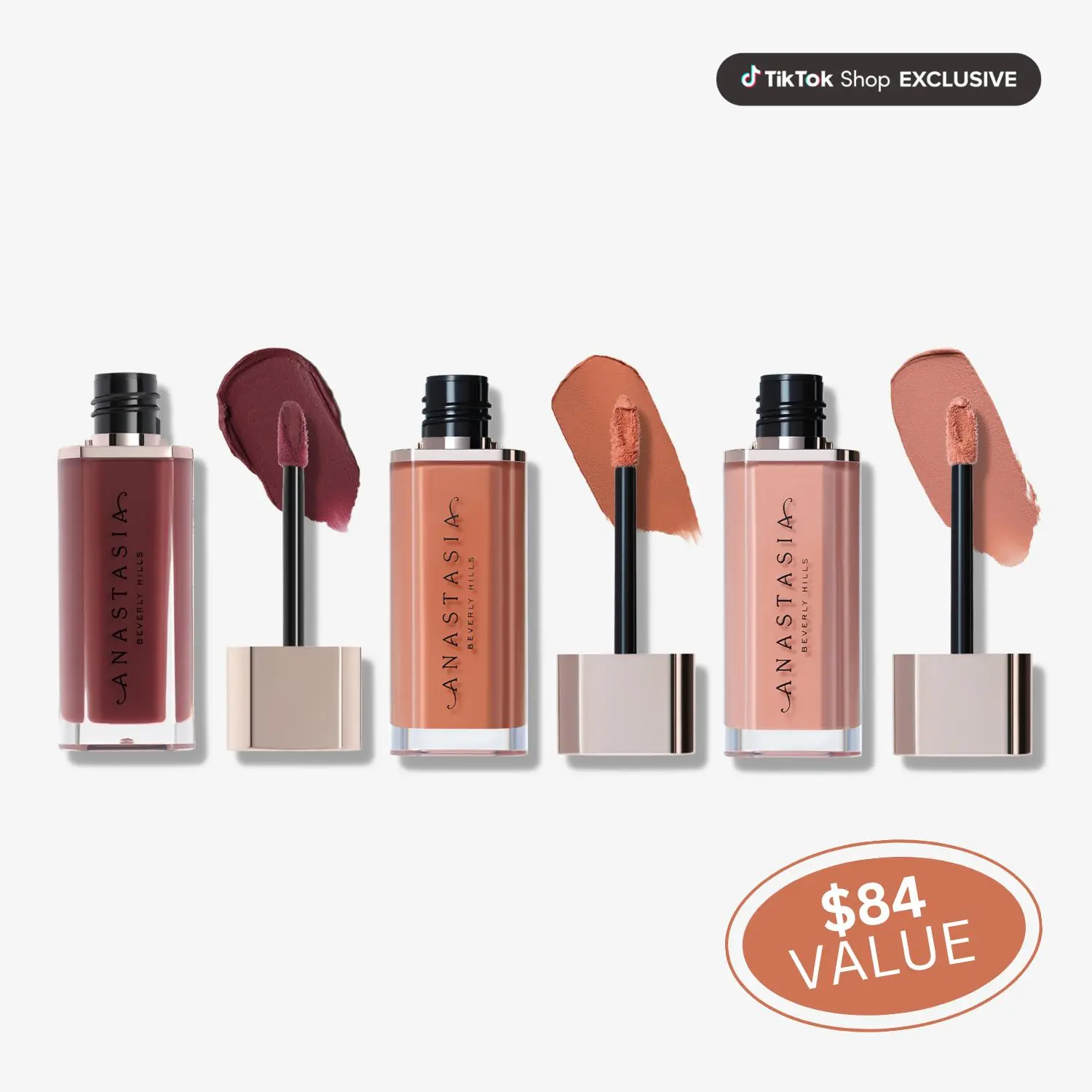 Spring into soft, velvety color with this fresh Lip Velvet Trio. Pomegranate delivers a juicy berry-red pop, Peach Amber adds a warm peachy nude glow, and Crush completes the set with a flirty pink-rose tone. Lightweight, smooth, and ultra-comfortable, these shades take you from everyday wear to date-night glam with ease.