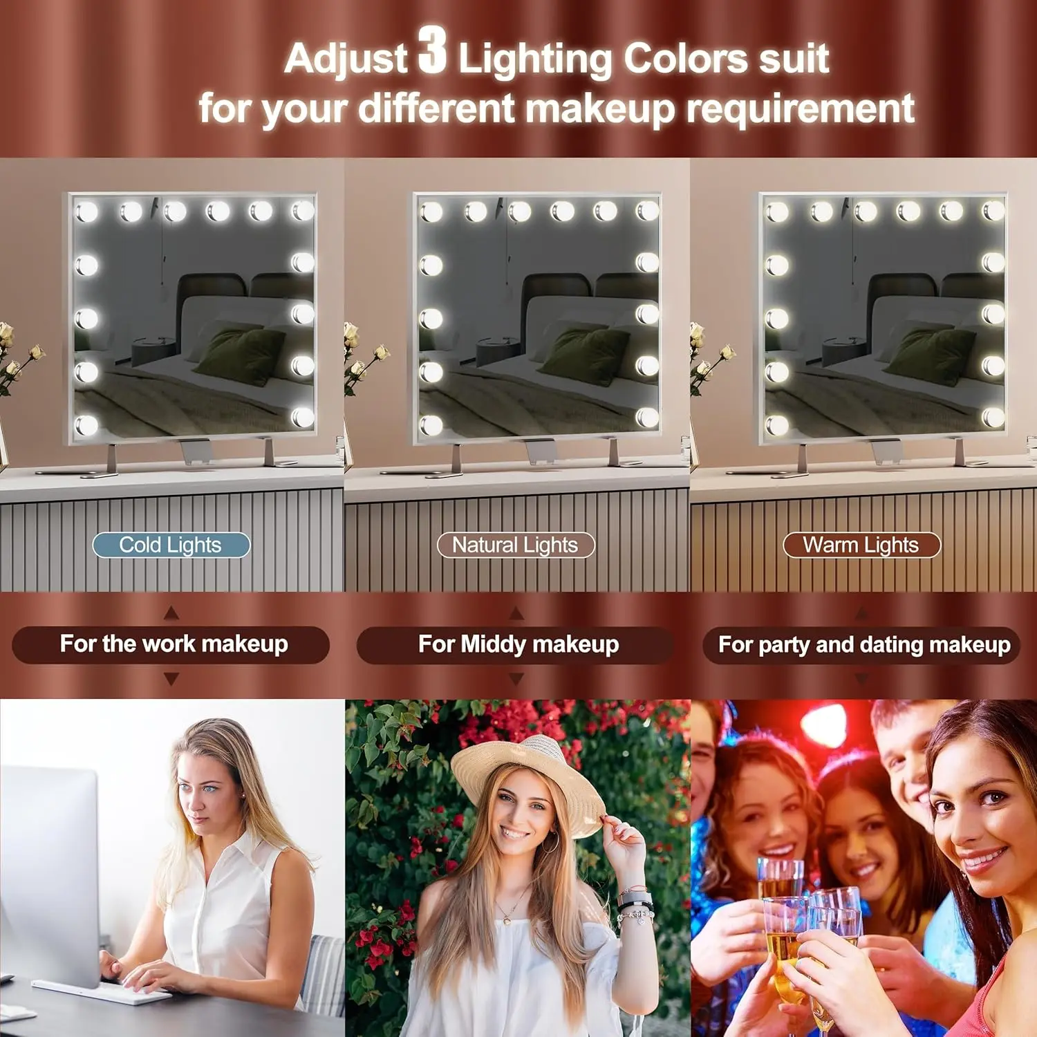 ·After-Sale Service: If you're unhappy with the Hollywood mirror with lights you received, Please don't hesitate to contact us, we provide 24hrs customer service.