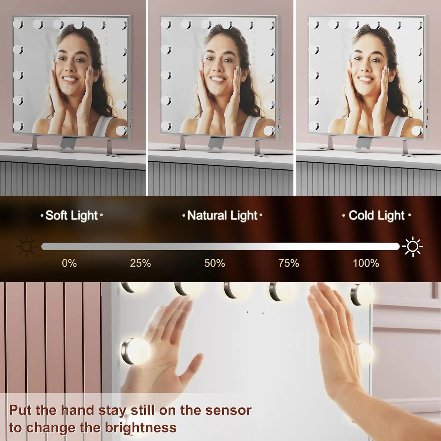 You only need to wave your hand to adjust the lighting and brightness. You experience the feeling of possessing magic by use the vanity mirror!