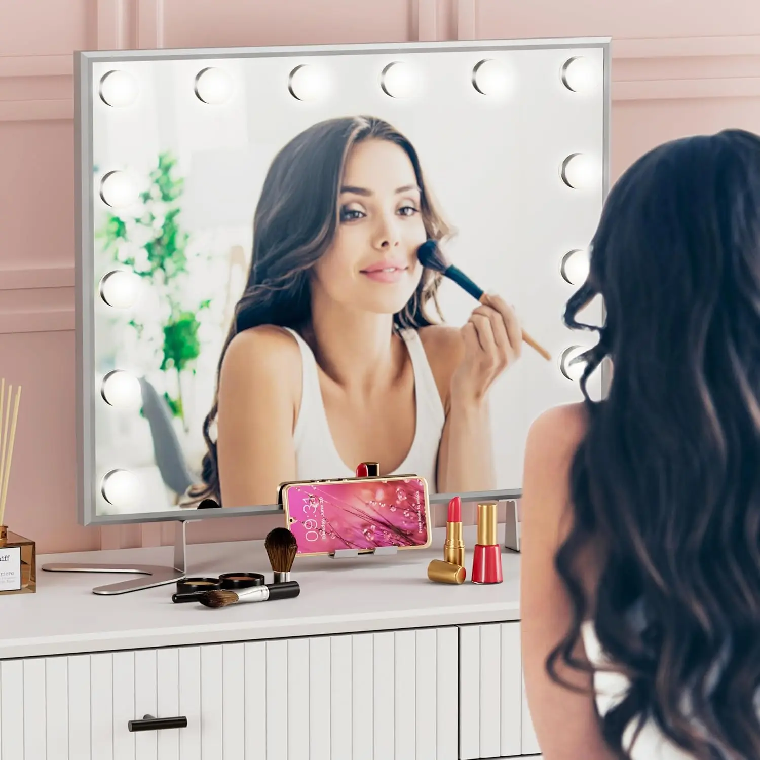 ·Easy to Assemble - You only need to install the metal legs of the hollywood mirror and the phone holder, after power on, you can use it. The installation is very simple and does not require much time, saving you time and effort