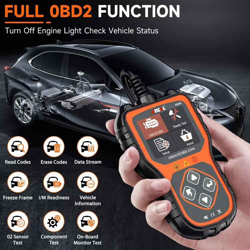 AS200 is OBD2 Scanner which is special for 12V cars, it includes 9 protocol which meet most of cars' need, support to scan most of cars which have OBD2 protocol, do quick scan and show error, each error code have a explanation in the follow, so u will know what error your car has immediately.