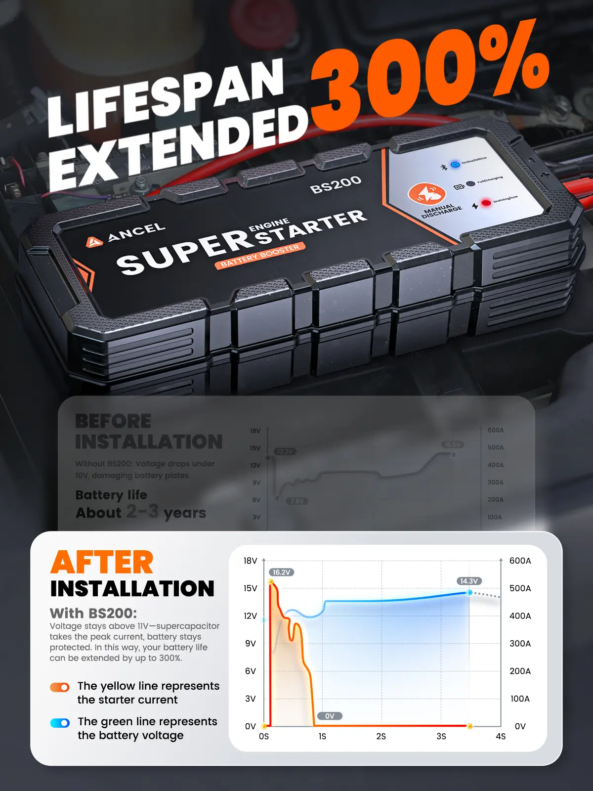 Yes, the Super Starter can take on large current discharges, significantly relieving the burden on the car's battery, thereby extending its lifespan.