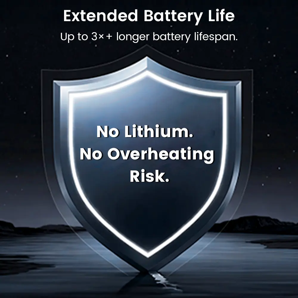 Long Lifespan - Supports up to 100,000 charge-discharge cycles without loss of performance, ensuring durability and reliability.