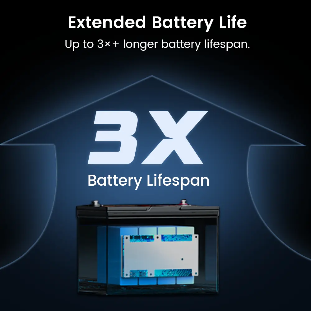 Supercapacitor Technology - Powered by supercapacitor technology, the BS200 offers real-time battery intelligence through the app, ensuring reliable performance in extreme climates from -40°C to 80°C.