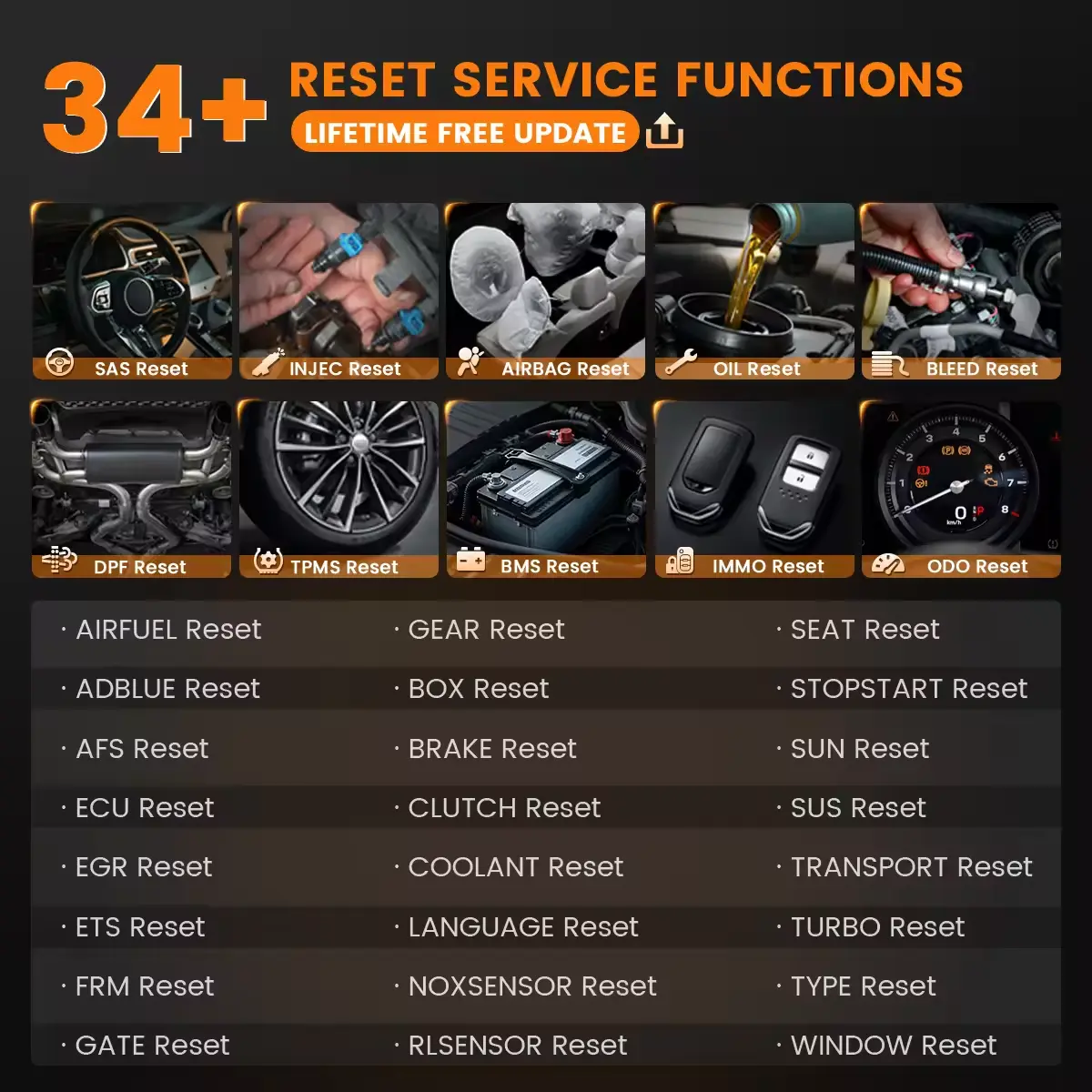 Note: the specific reset functions supported may vary depending on vehicle models and software versions. If you need to know the support status of a specific model, please Message us