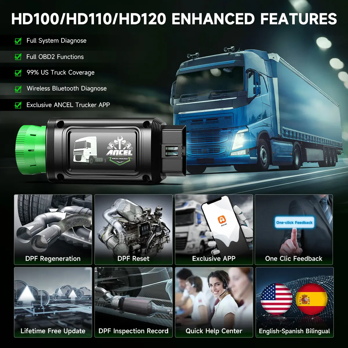 The 2025 Ancel HD100/HD110/HD120 Heavy Duty Truck Diesel Scanner is a vital diagnostic tool for diesel OBD systems. It offers in-depth diagnostics and service functions for various heavy-duty diesel trucks. Keep your vehicle running efficiently with this powerful scanner.